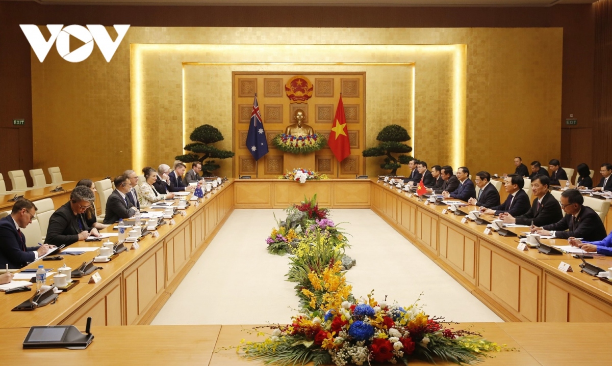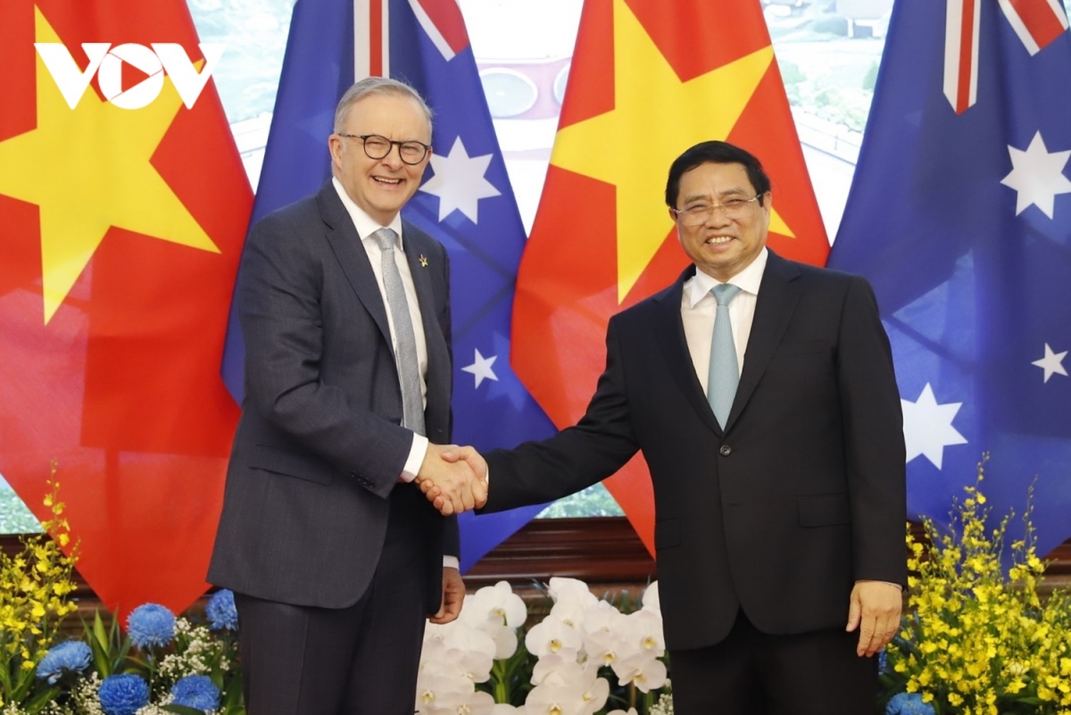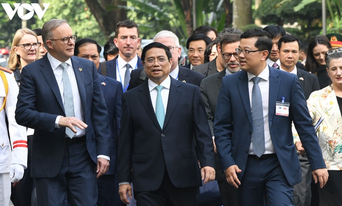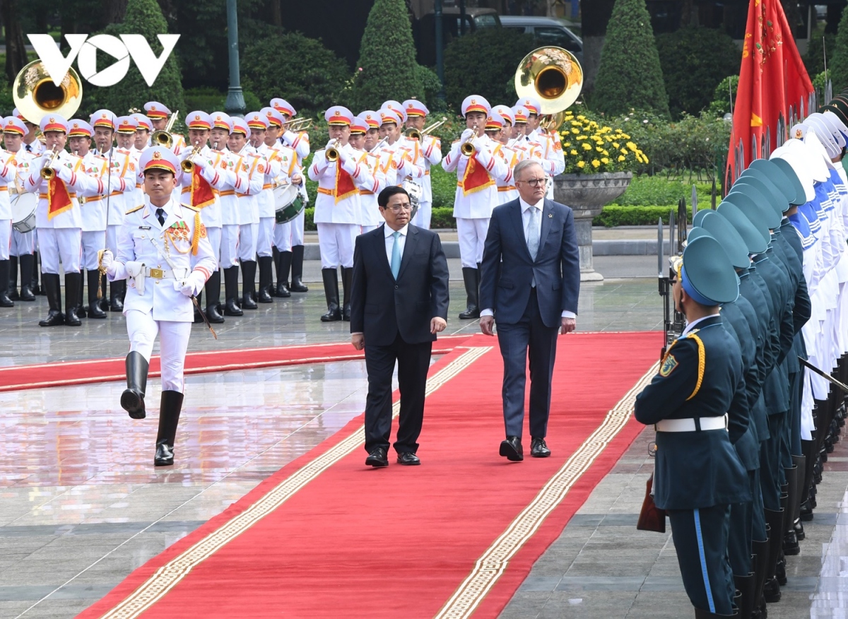 (VOV5) -Sáng 4/6, tại Phủ Chủ tịch, Thủ tướng Phạm Minh Chính đã chủ trì lễ đón Thủ tướng Australia Anthony Albanese thăm và làm việc chính thức tại Việt Nam trong 2 ngày từ 3/6-4/6.