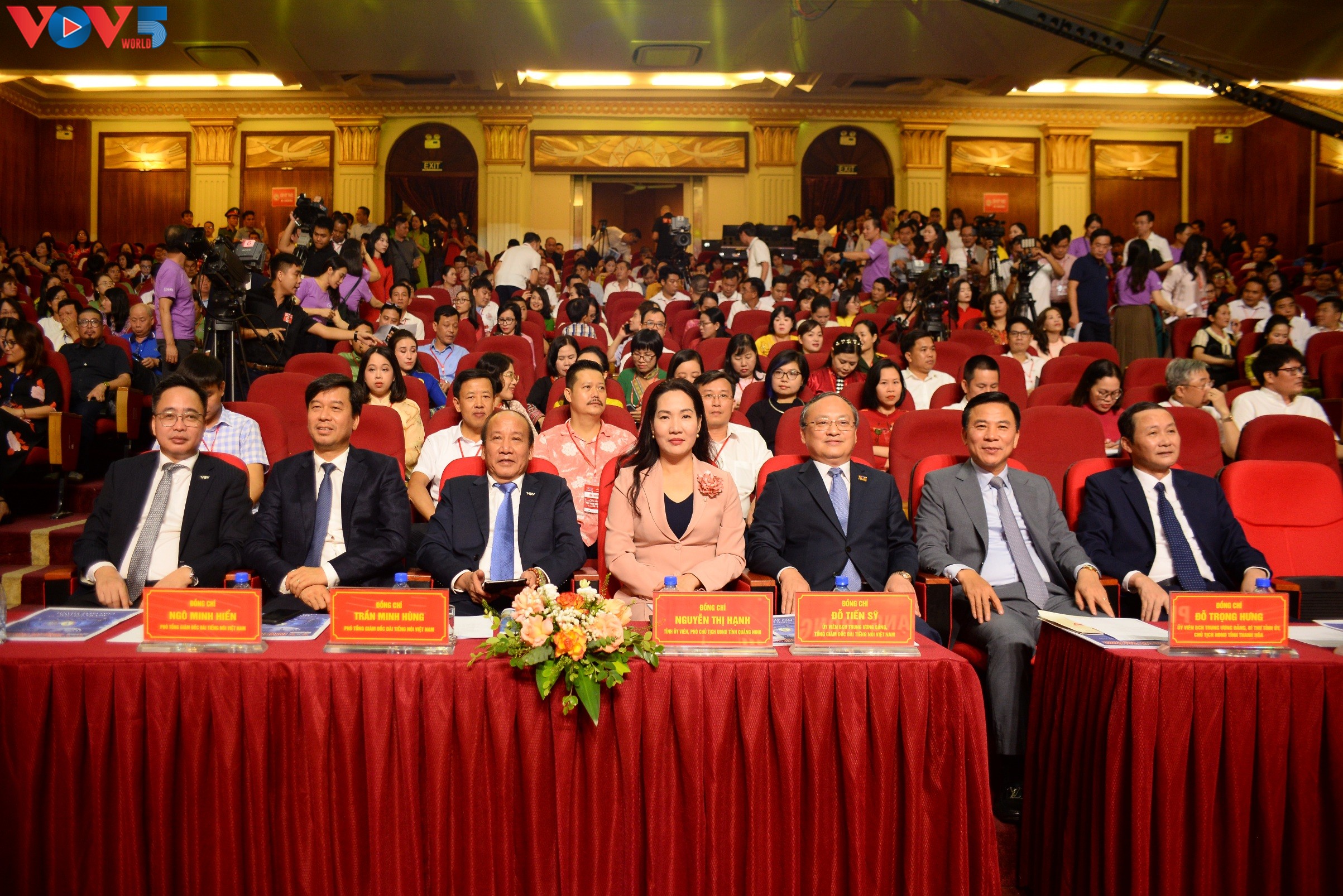 | Về phía Đài Tiếng nói Việt Nam có ông Đỗ Tiến Sỹ - Ủy viên Trung ương Đảng, Tổng Giám đốc VOV, Trưởng Ban chỉ đạo Liên hoan Phát thanh toàn quốc lần thứ XVI và các Phó Tổng Giám đốc: Trần Minh Hùng, Ngô Minh Hiển, Phạm Mạnh Hùng, Vũ Hải Quang cùng đại diện lãnh đạo các đơn vị của VOV. Ảnh: Hà Phương/VOV |
