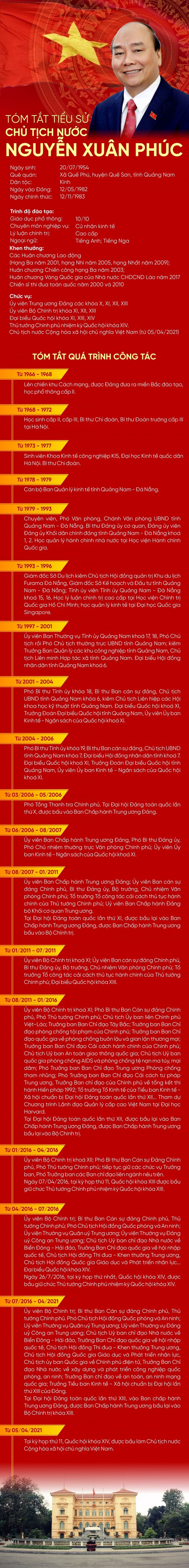 Ngày 05/04/2021, tại kỳ họp thứ 11, Quốc hội khóa XIV, ông Nguyễn Xuân Phúc được bầu làm Chủ tịch nước Cộng hòa xã hội chủ nghĩa Việt Nam. Nghị quyết về việc bầu Chủ tịch nước đã được Quốc hội thông qua với 468/468 đại biểu tham gia biểu quyết tán thành (chiếm 97,50% tổng số đại biểu Quốc hội).