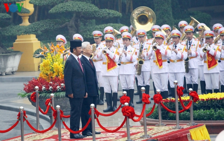 Sáng 27/3, tại Phủ Chủ tịch, Tổng Bí thư, Chủ tịch nước Nguyễn Phú Trọng chủ trì Lễ đón chính thức Quốc vương Brunei Darussalam Sultan Haji Hassanal Bolkiah thăm cấp Nhà nước tới Việt Nam. (Ảnh: Trọng Phú) |