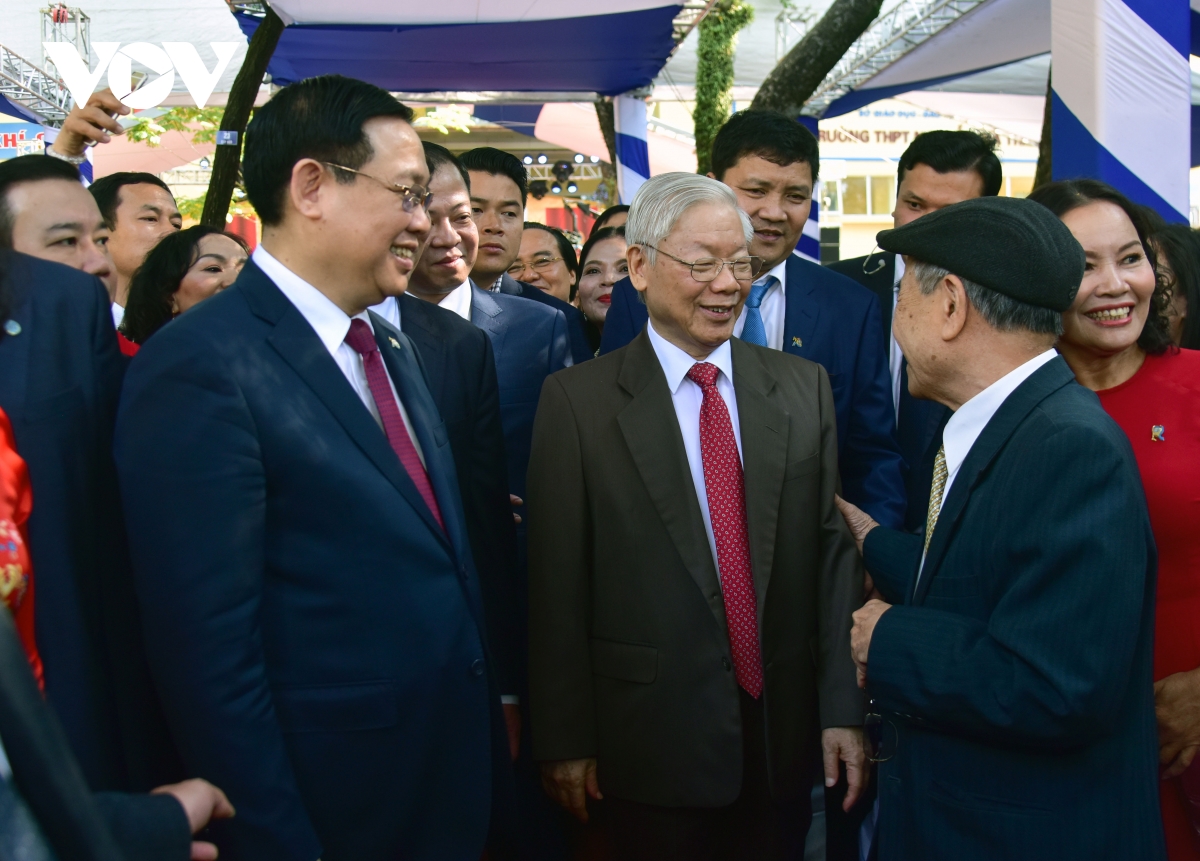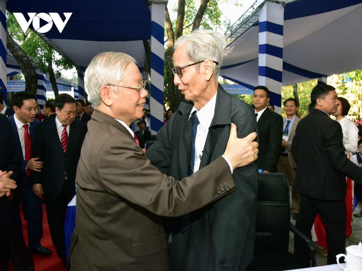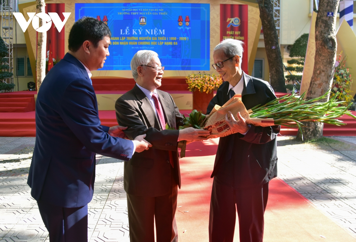 Là người giữ chức vụ cao nhất của Đảng, Nhà nước nhưng Tổng Bí thư, Chủ tịch nước Nguyễn Phú Trọng vô cùng giản dị và khiêm nhường. Ông luôn dành những từ ngữ trân trọng, trìu mến và ấm áp khi kể về thầy, cô và bạn bè. Với ông, họ là một phần rất quan trọng và ý nghĩa trong cuộc đời của mình. Chính vì thế, dù ở bất kỳ cương vị nào, nhưng khi về với trường cũ, về với lớp cũ, Tổng Bí thư, Chủ tịch nước Nguyễn Phú Trọng vẫn là cậu học sinh thuở nào, giống như các bạn của mình. Khi thầy Lê Trung Kiên, Hiệu trưởng Trường THPT Nguyễn Gia Thiều thay mặt các thế hệ thầy trò trân trọng mời Tổng Bí thư, Chủ tịch nước về dự Lễ kỷ niệm 70 năm ngày thành lập trường, ông nói: “Em báo cáo các thầy, các cô, bây giờ em là Tổng Bí thư, Chủ tịch nước, nhưng khi về trường em xin phép được các thầy, các cô vẫn gọi em là Nguyễn Phú Trọng - cựu học sinh của nhà trường. Trong buổi lễ, các thầy cũng giới thiệu em là cựu học sinh Nguyễn Phú Trọng. Em cũng xin phép được phát biểu cảm tưởng về những kỷ niệm của thời học sinh, về những kỷ niệm đẹp với các thầy cô và các bạn học”. Tổng Bí thư, Chủ tịch nước Nguyễn Phú Trọng dí dỏm hỏi thêm: “Em nói vậy các thầy cô thấy có được không?”.