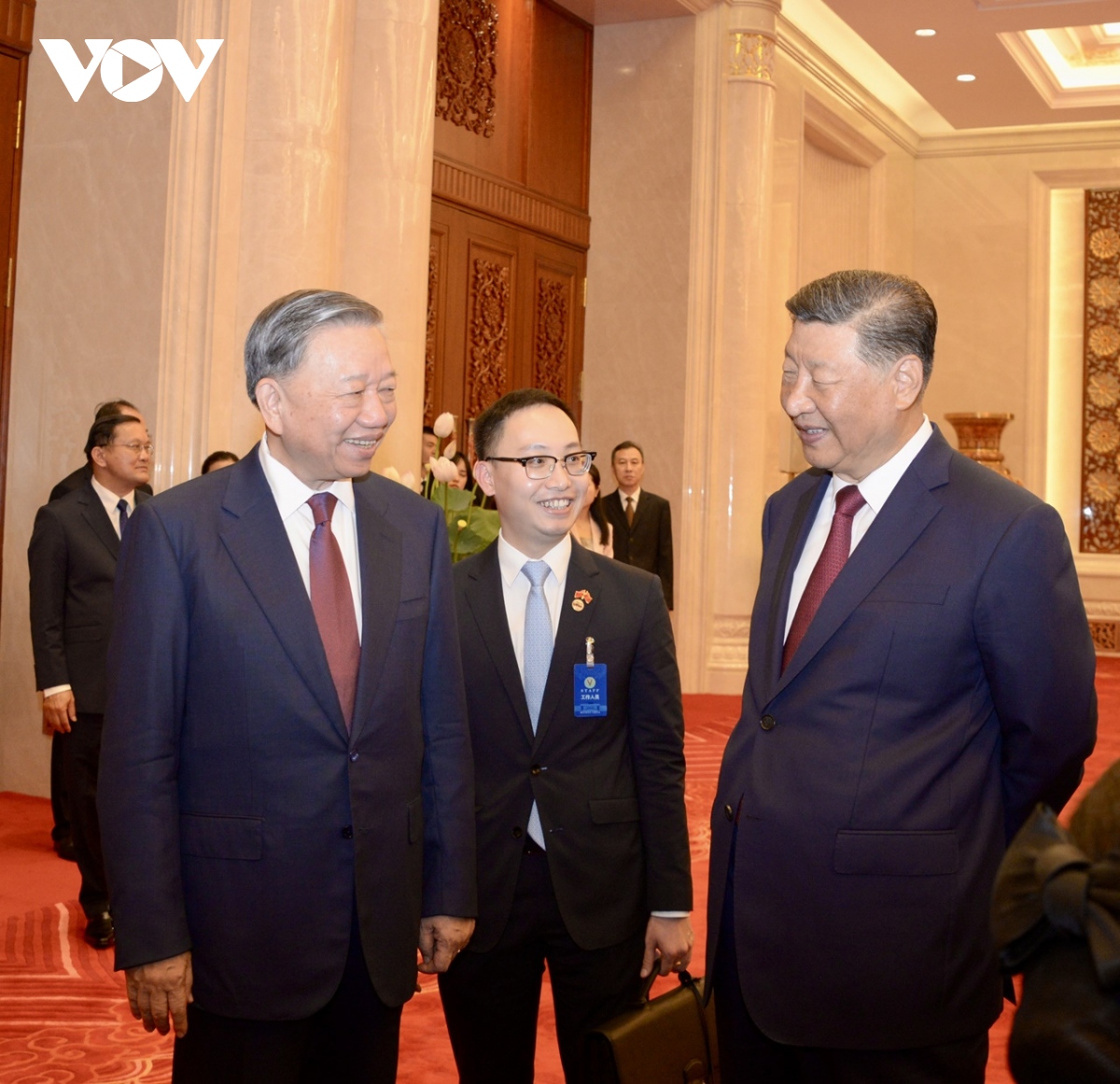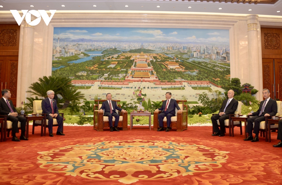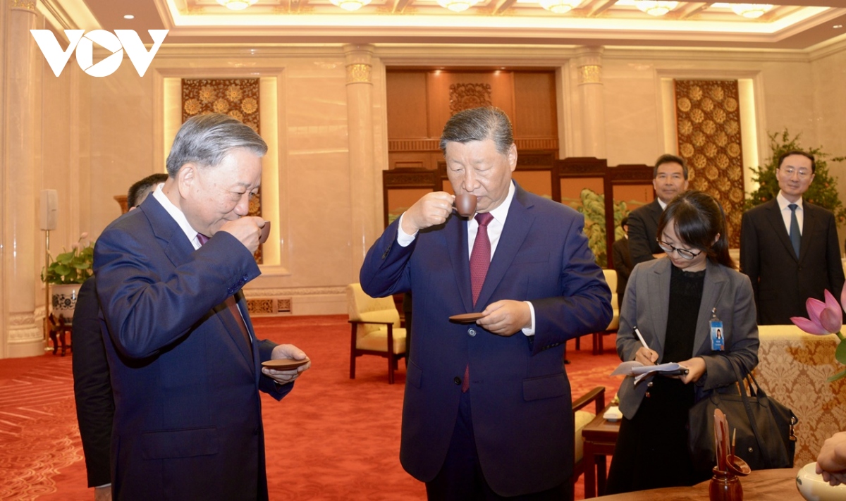 Trưa 19/8, sau khi Tổng Bí thư, Chủ tịch Trung Quốc Tập Cận Bình và Tổng Bí thư, Chủ tịch nước Tô Lâm chứng kiến lễ ký kết văn kiện hợp tác giữa các Bộ ngành địa phương 2 nước, Tổng Bí thư, Chủ tịch nước Trung Quốc Tập Cận Bình đã trân trọng mời và cùng Tổng Bí thư, Chủ tịch nước Tô Lâm dự tiệc trà.