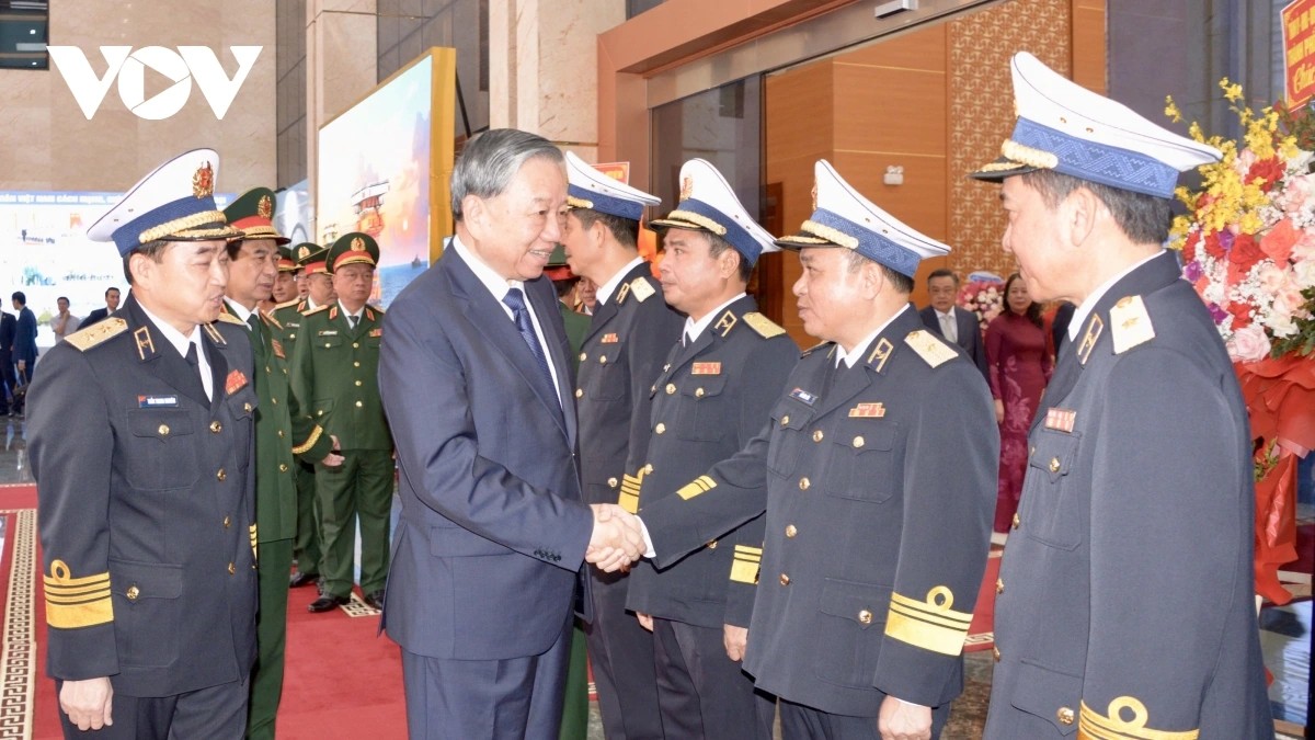 Đội danh dự của Quân chủng Hải Quân chào đón Tổng Bí thư Tô Lâm.