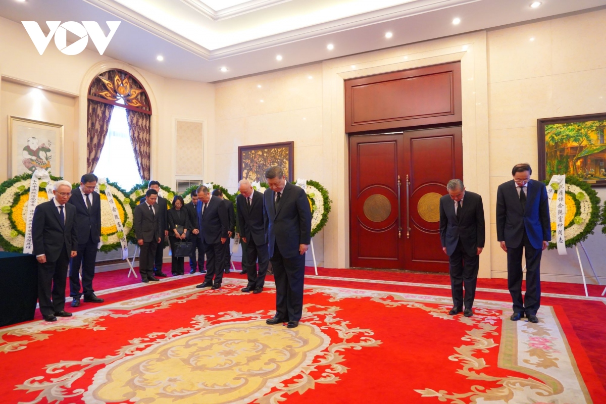 Ngày 20/7/2024, tại Bắc Kinh, Tổng Bí thư Ban Chấp hành Trung ương Đảng Cộng sản Trung Quốc, Chủ tịch nước Cộng hòa nhân dân Trung Hoa, Chủ tịch Quân ủy Trung ương Trung Quốc Tập Cận Bình đã đến Đại sứ quán Việt Nam tại Trung Quốc viếng, chia buồn sâu sắc và ghi sổ tang trước việc Tổng Bí thư Ban Chấp hành Trung ương Đảng Cộng sản Việt Nam Nguyễn Phú Trọng từ trần. |