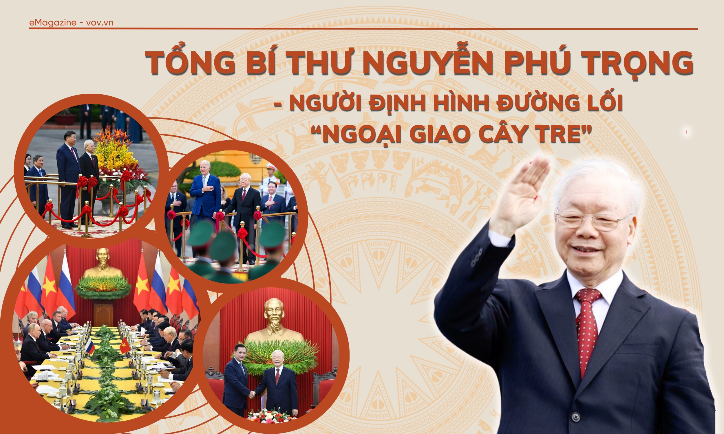 “Tư tưởng “dĩ bất biến, ứng vạn biến” của Chủ tịch Hồ Chí Minh trong kháng chiến đã được Tổng Bí thư Nguyễn Phú Trọng khái quát thành đường lối “ngoại giao cây tre. Gốc tre tượng trưng cho lợi ích quốc gia, bám chắc vào lòng đất, không đổ gãy trong giông bão, ứng với vế đầu “dĩ bất biến”. Trong khi đó, ngọn tre mềm dẻo, linh hoạt, thể hiện tinh thần ngoại giao “ứng vạn biến” của nhân dân ta”, Thiếu tướng Lê Văn Cương nói.