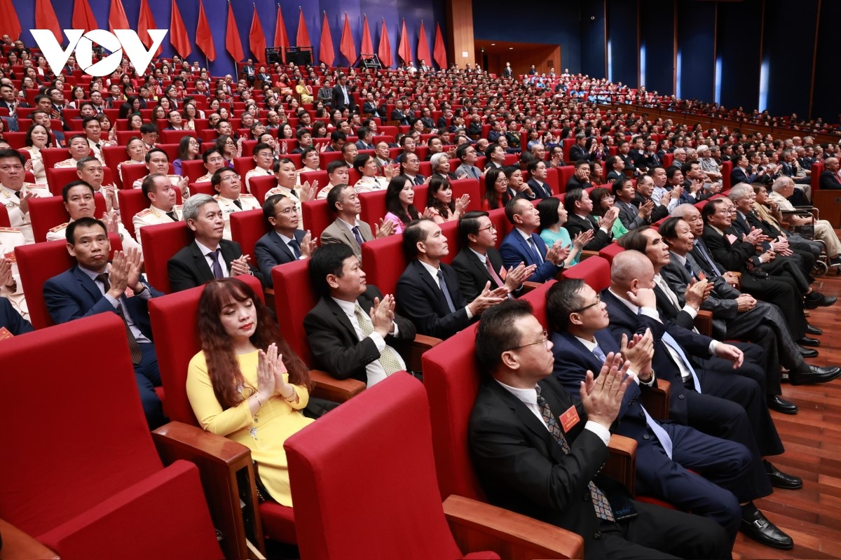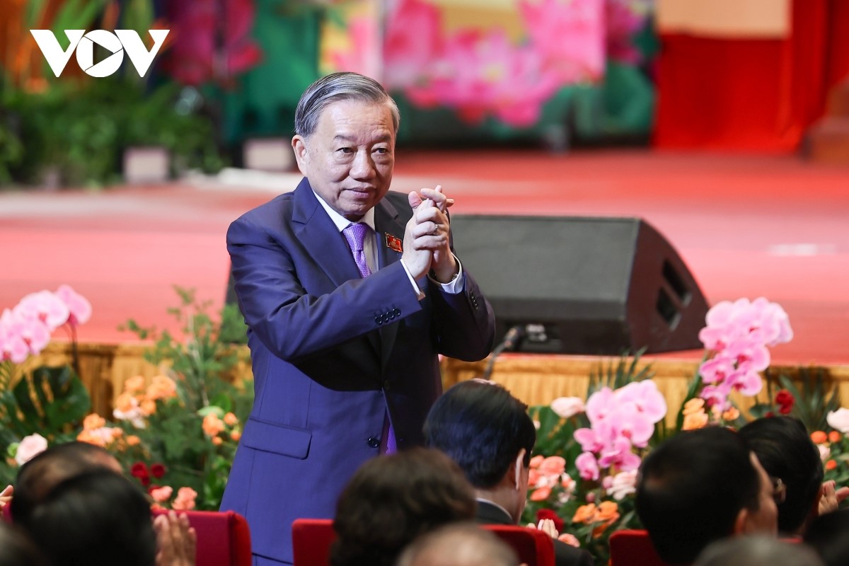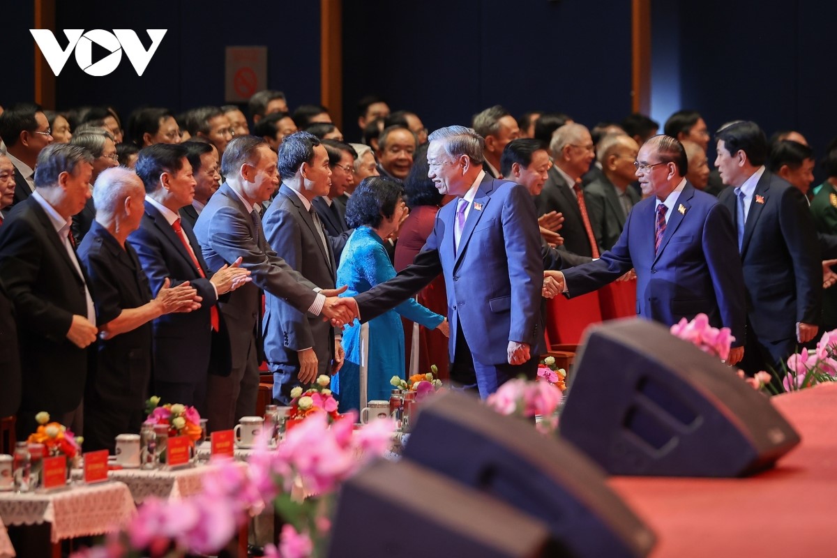 Tổng Bí thư Tô Lâm, Thủ tướng Chính phủ Phạm Minh Chính cùng nhiều lãnh đạo Đảng, Nhà nước, nguyên lãnh đạo Đảng, Nhà nước tham dự buổi lễ. |