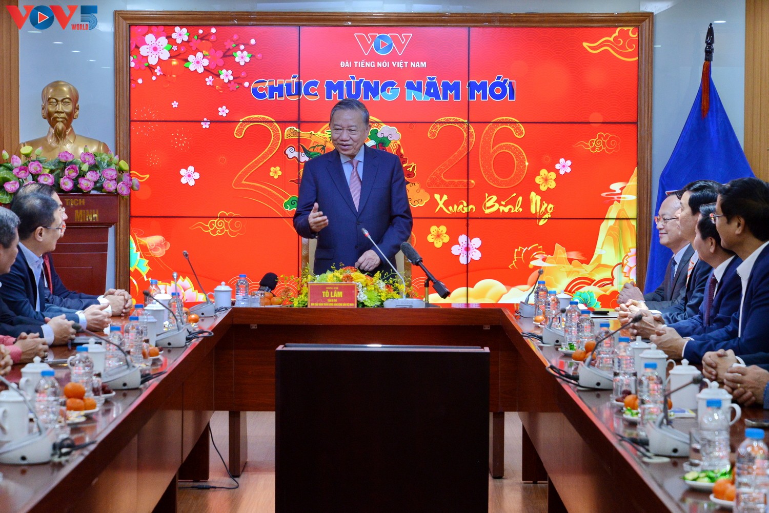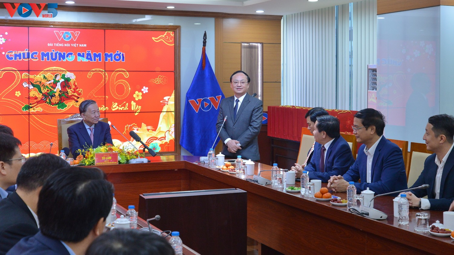 | Tổng Bí thư Tô Lâm gửi lời động viên, chúc Tết tới toàn thể cán bộ, nhân viên Đài Tiếng nói Việt Nam. |