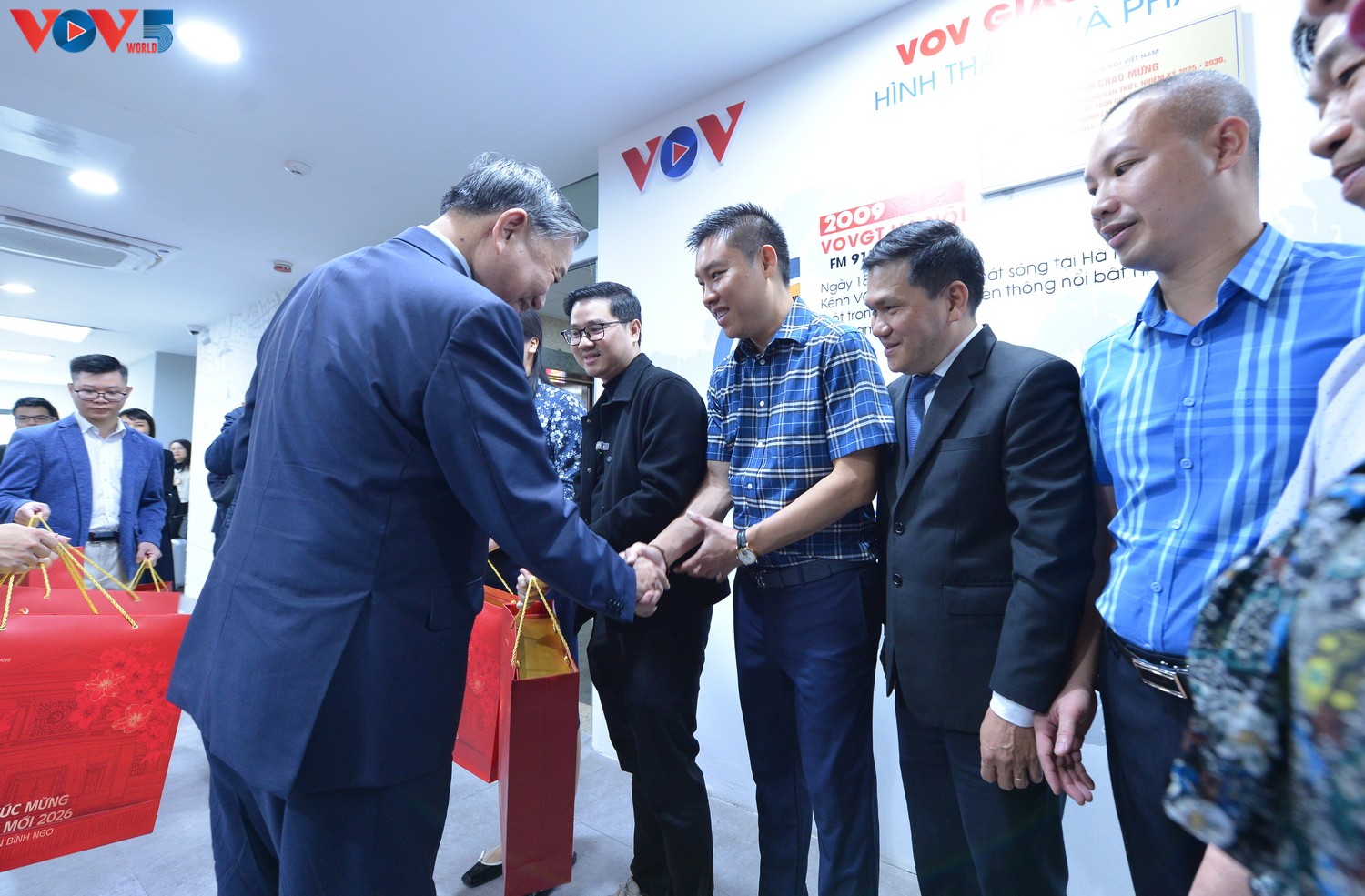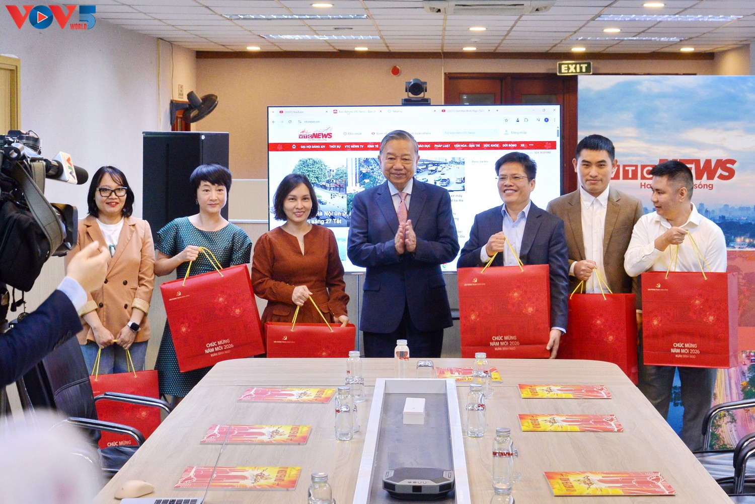 | Trong không khí mừng Đảng, mừng Xuân, mừng đất nước đổi mới, chào mừng thành công Đại hội XIV của Đảng và chuẩn bị đón Tết Nguyên Đán Bính Ngọ 2026, sáng 14/2, Tổng Bí thư Tô Lâm đã tới thăm, chúc Tết, động viên cán bộ, công nhân viên, kỹ thuật viên Đài TNVN (VOV) và Đài Truyền hình Việt Nam (VTV). |