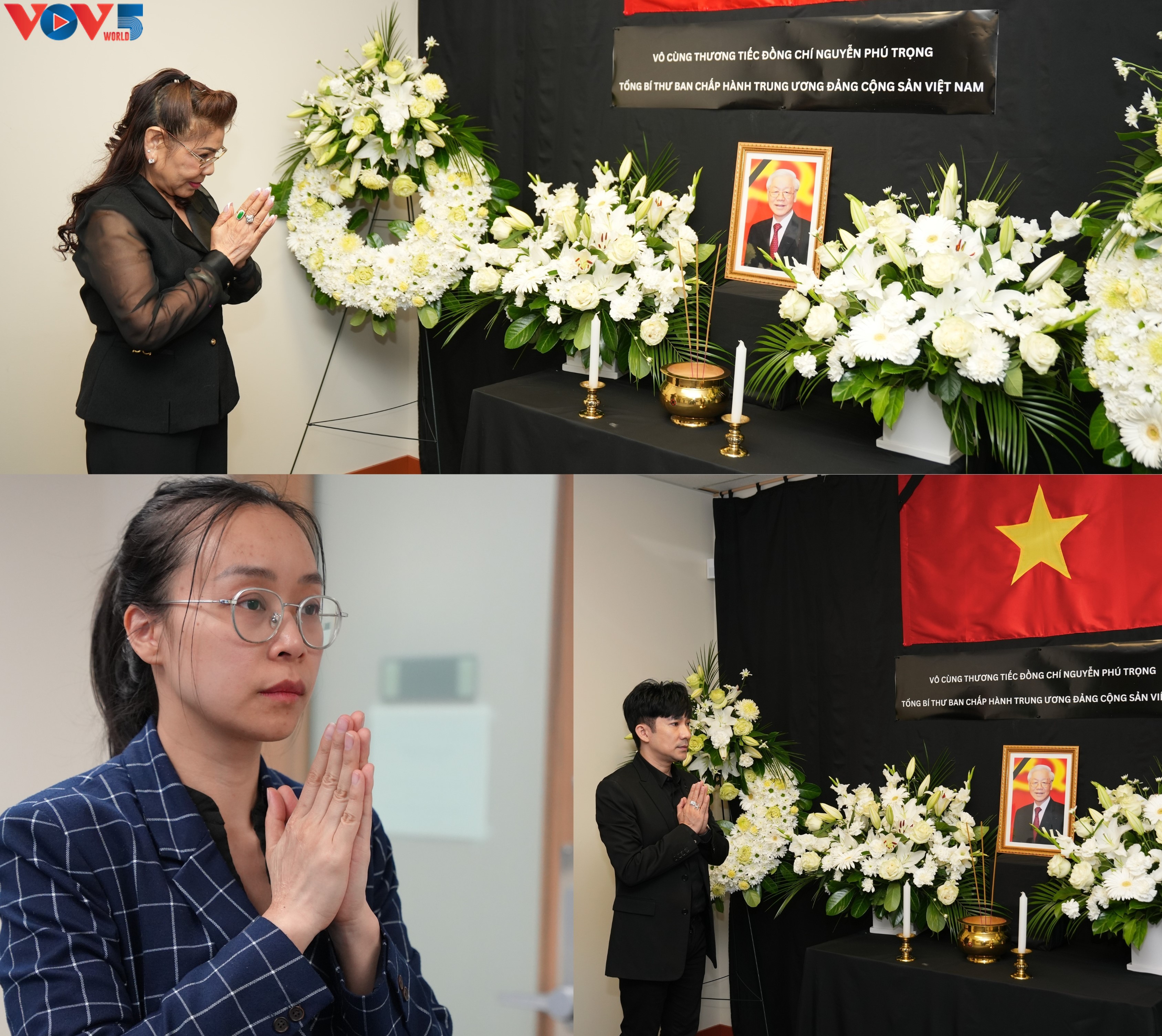 Trong bầu không khí trang nghiêm, xúc động, toàn thể cán bộ, nhân viên lãnh sự quán Việt Nam tại Vancouver, do Tổng lãnh sự Phan Kiều Thu dẫn đầu, đã dành một phút mặc niệm và tiễn biệt Tổng Bí thư Nguyễn Phú Trọng.