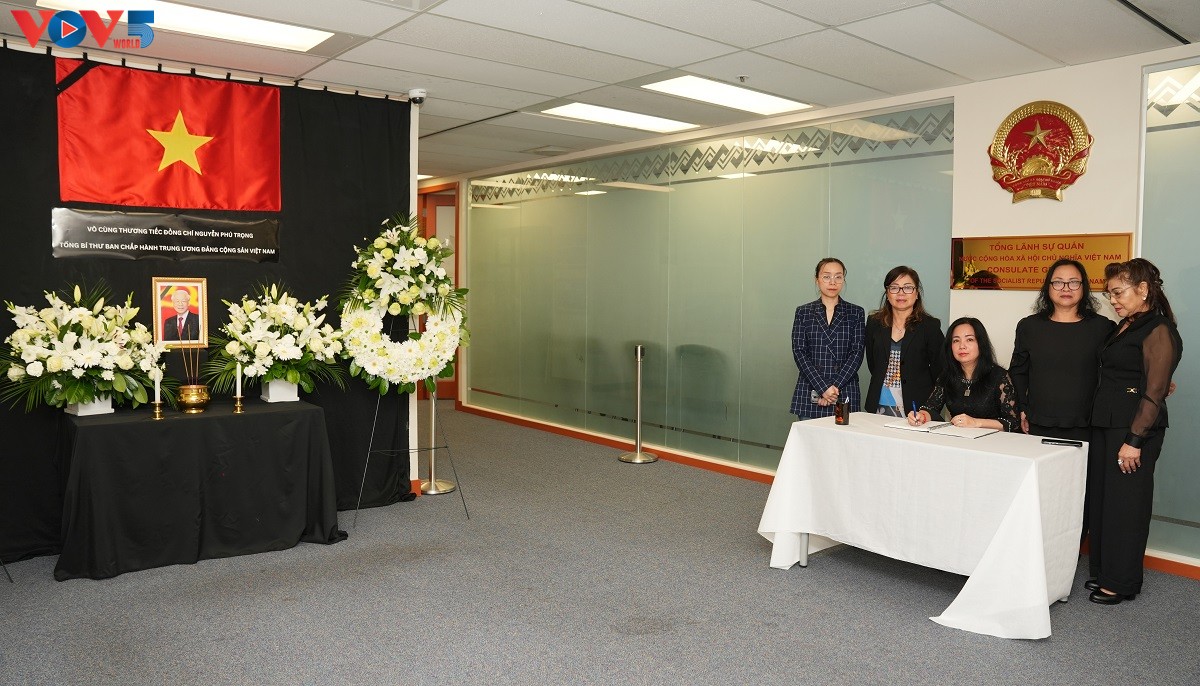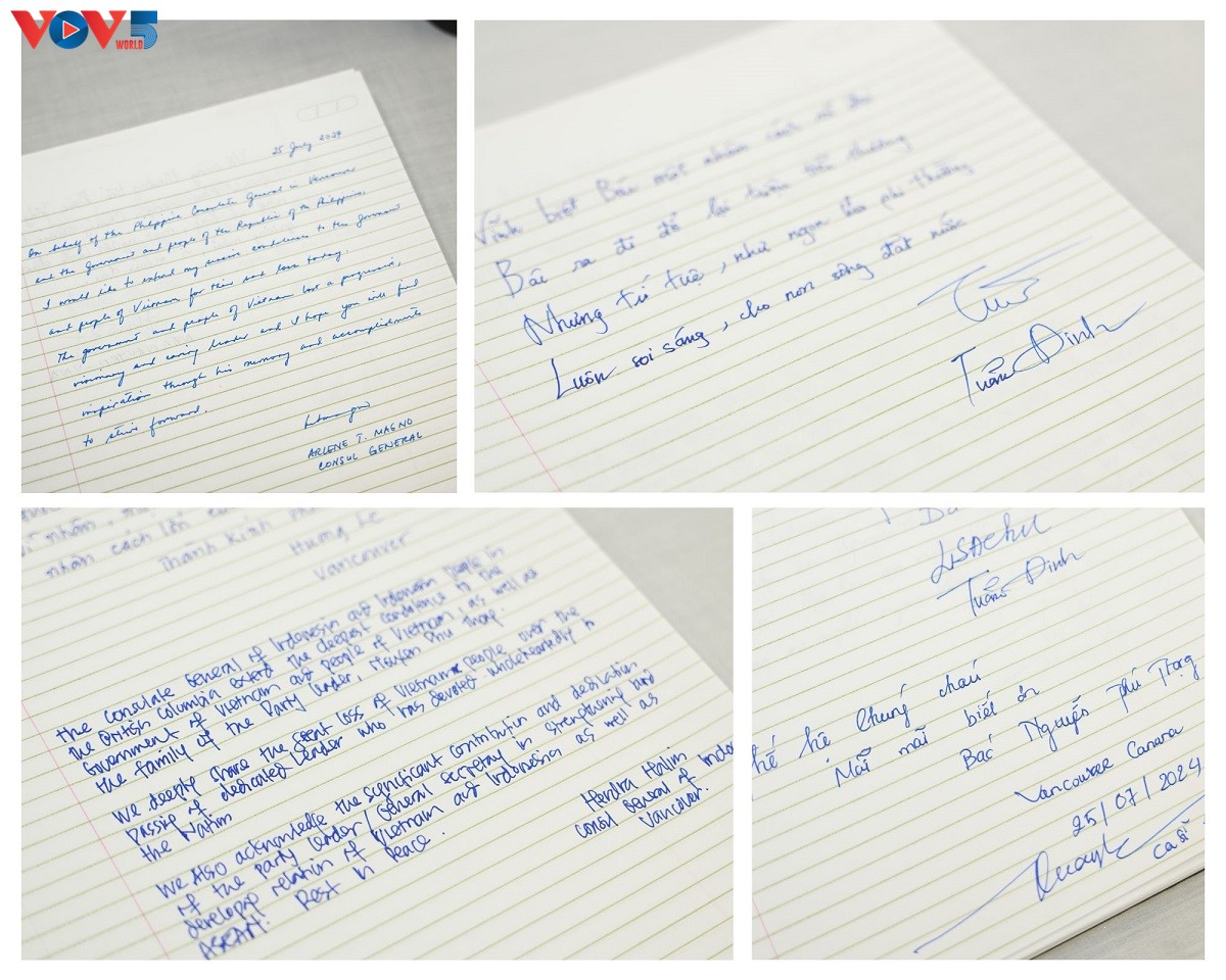 Trong buổi sáng đầu tiên của Lễ viếng, Tổng lãnh sự Philippines tại Vancouver, bà T. Magno Assumes, và Tổng lãnh sự Indonesia tại Vancouver, ông Hendra Halim, là những người đầu tiên tham dự. Hai Tổng lãnh sự đã chia sẻ nỗi mất mát lớn lao đối với Nhà nước và nhân dân Việt Nam. Cùng ngày, ca sỹ Quang Hà và ê kíp, đang có chuyến lưu diễn tại Vancouver vào cuối tháng 7, đã đến viếng và ghi sổ tang. Đông đảo bà con kiều bào, các thế hệ người Việt Nam đang học tập và làm việc tại Canada cũng tới viếng Tổng Bí thư Nguyễn Phú Trọng và bày tỏ niềm tiếc thương vị lãnh đạo hết lòng vì nước, vì dân. Trong sổ tang, mọi người đều bày tỏ tiếc thương trước sự ra đi của Tổng Bí thư và đánh giá cao những đóng góp của Tổng Bí thư cho sự phát triển của Việt Nam, cũng như việc tăng cường quan hệ giữa Việt Nam với các nước trên thế giới. Lễ viếng và ghi sổ tang Tổng Bí thư Nguyễn Phú Trọng tại Tổng lãnh sự quán Việt Nam tại Vancouver được tổ chức trong 2 ngày 25 và 26/7.
