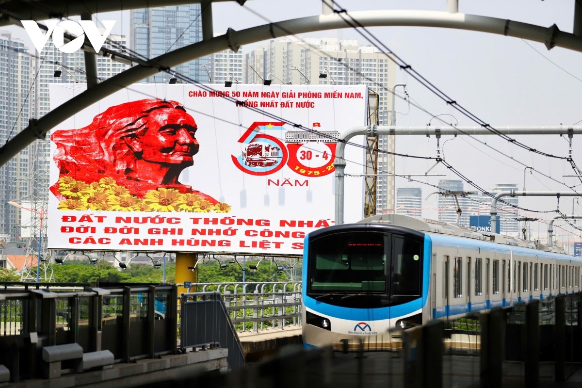 Không khí chào mừng kỷ niệm 50 năm đất nước thống nhất, non sông liền một dải lan tỏa khắp phố phường TP. Hồ Chí Minh, từ trung tâm thành phố đến các quận huyện vùng ven. |