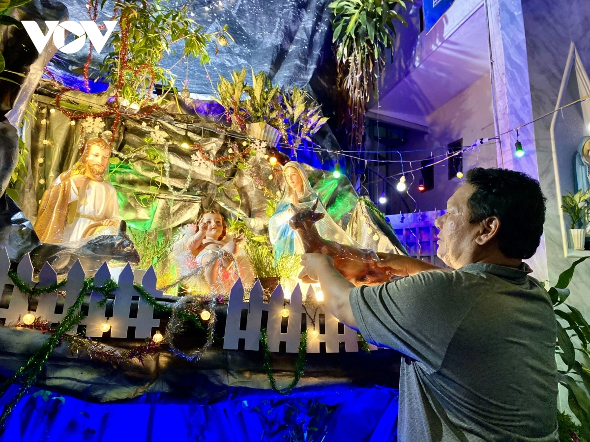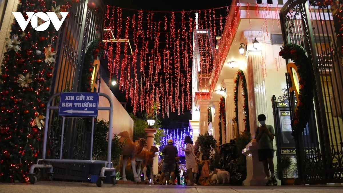 Nhiều gia đình ở hai bên đường của các xóm đạo trên địa bàn TP.HCM dịp này cũng trang hoàng nhà cửa, khiến con đường trở nên lung linh.