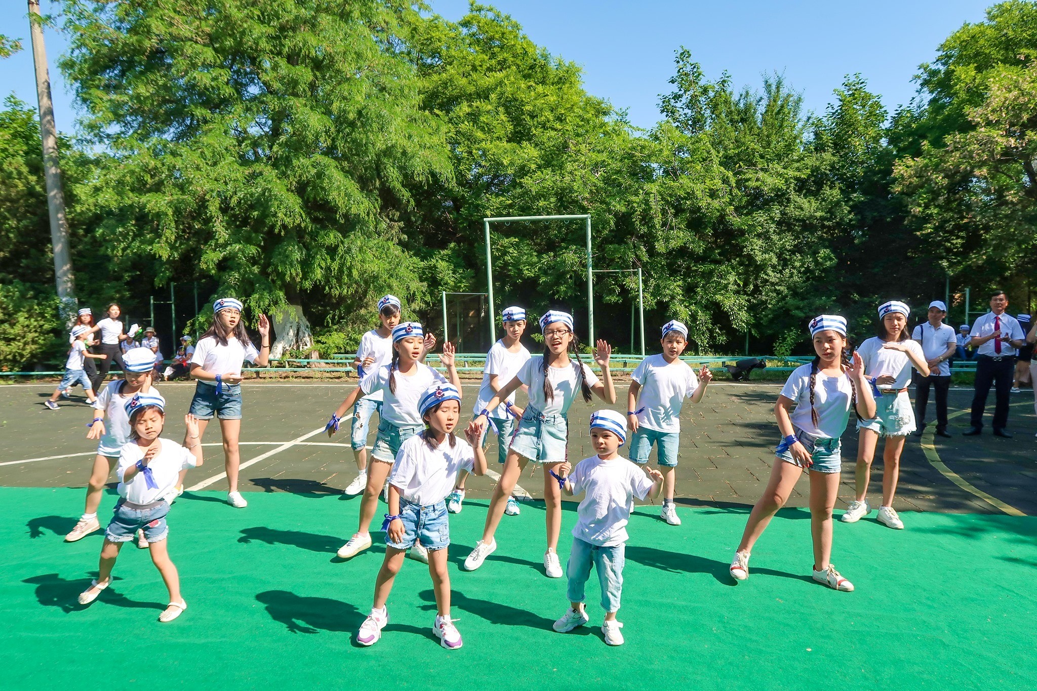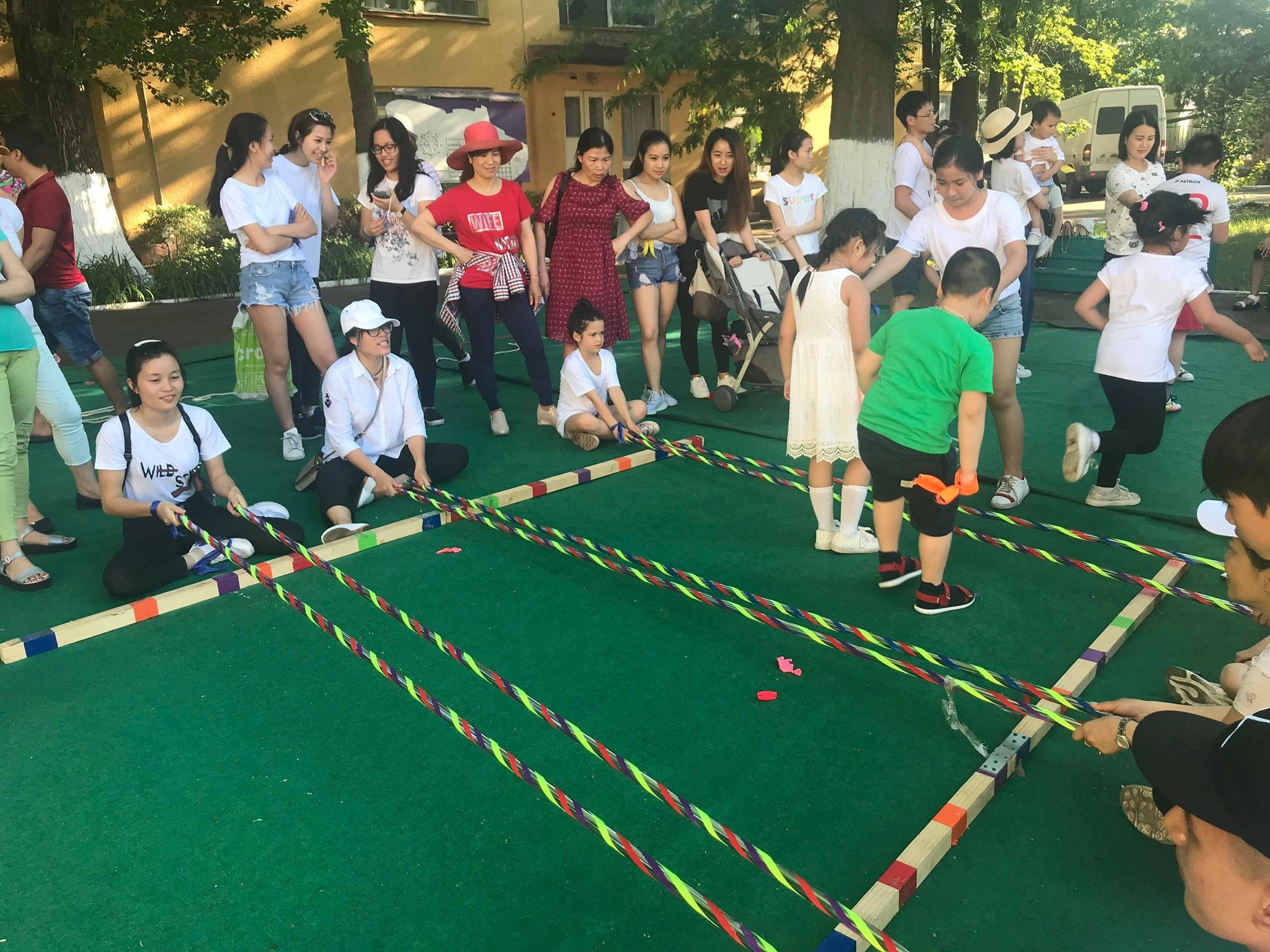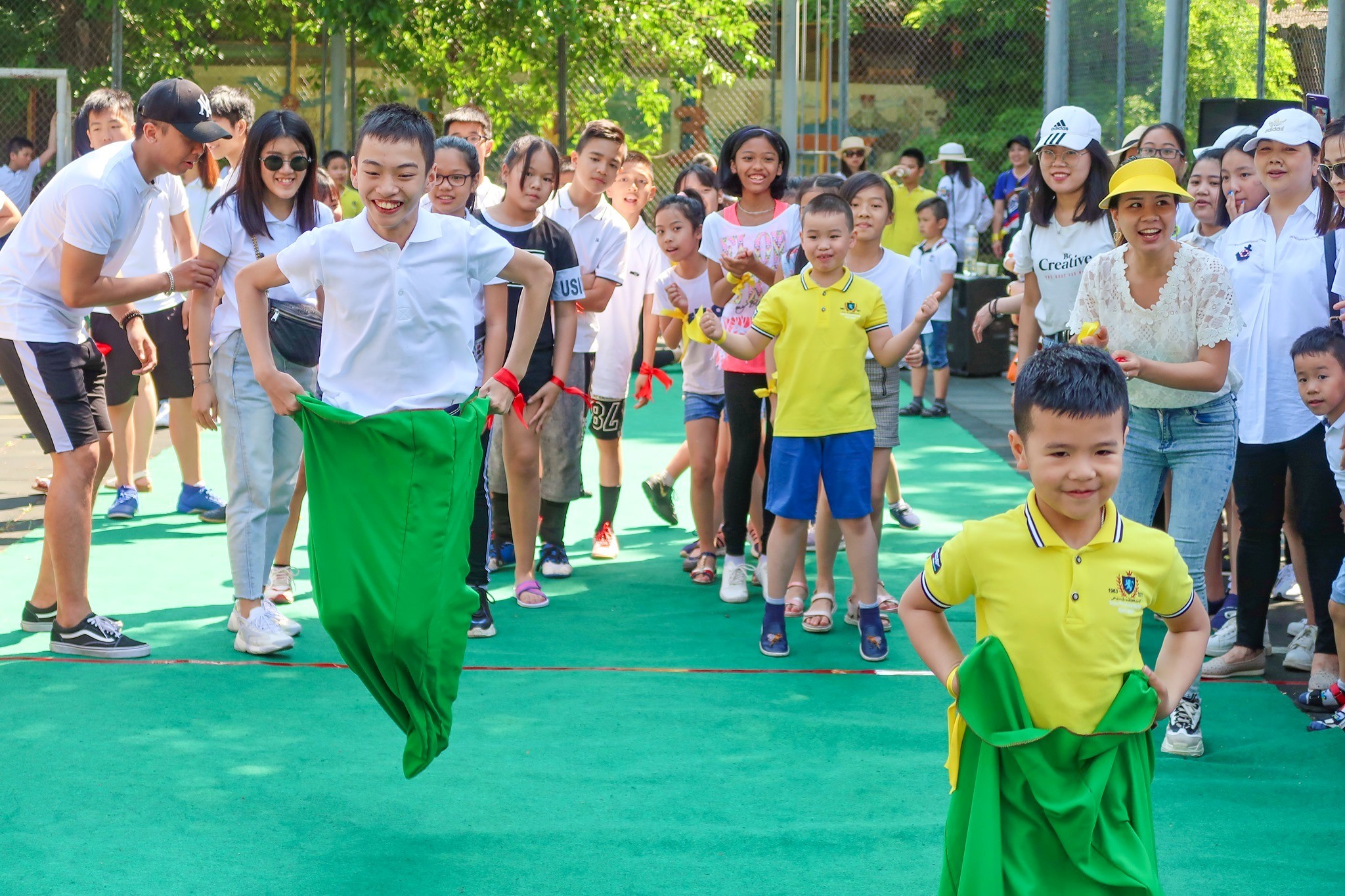 Dưới cái nắng hè rực rỡ có phần oi ả, các em vẫn cứ mải miết biểu diễn, vui chơi sôi nổi. Sau khi cổ vũ cho phần thi đấu bóng đá kịch tính diễn ra, các em khác vô cùng hào hứng tham gia các trò chơi dân gian.