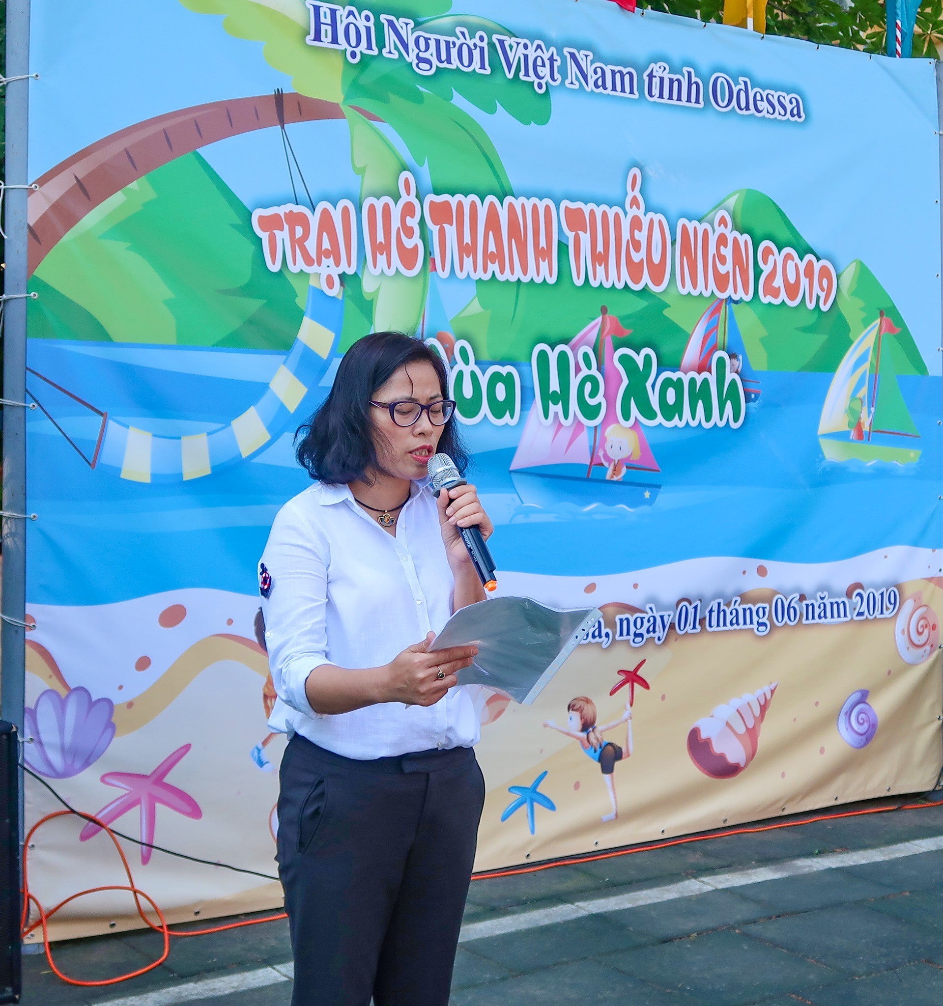 Phát biểu khai mạc Trại hè, bà Vũ An Bình – Ủy viên Ban chấp hành Hội, chủ tịch Hội Phụ nữ, trưởng Ban tổ chức nhấn mạnh đến vai trò quan trọng của việc quan tâm đến thế hệ mầm non tương lai của đất nước. Đây là nhiệm vụ của không chỉ gia đình, nhà trường mà còn của Đảng ủy và Hội NVN tỉnh Odessa cùng các ban ngành khác.