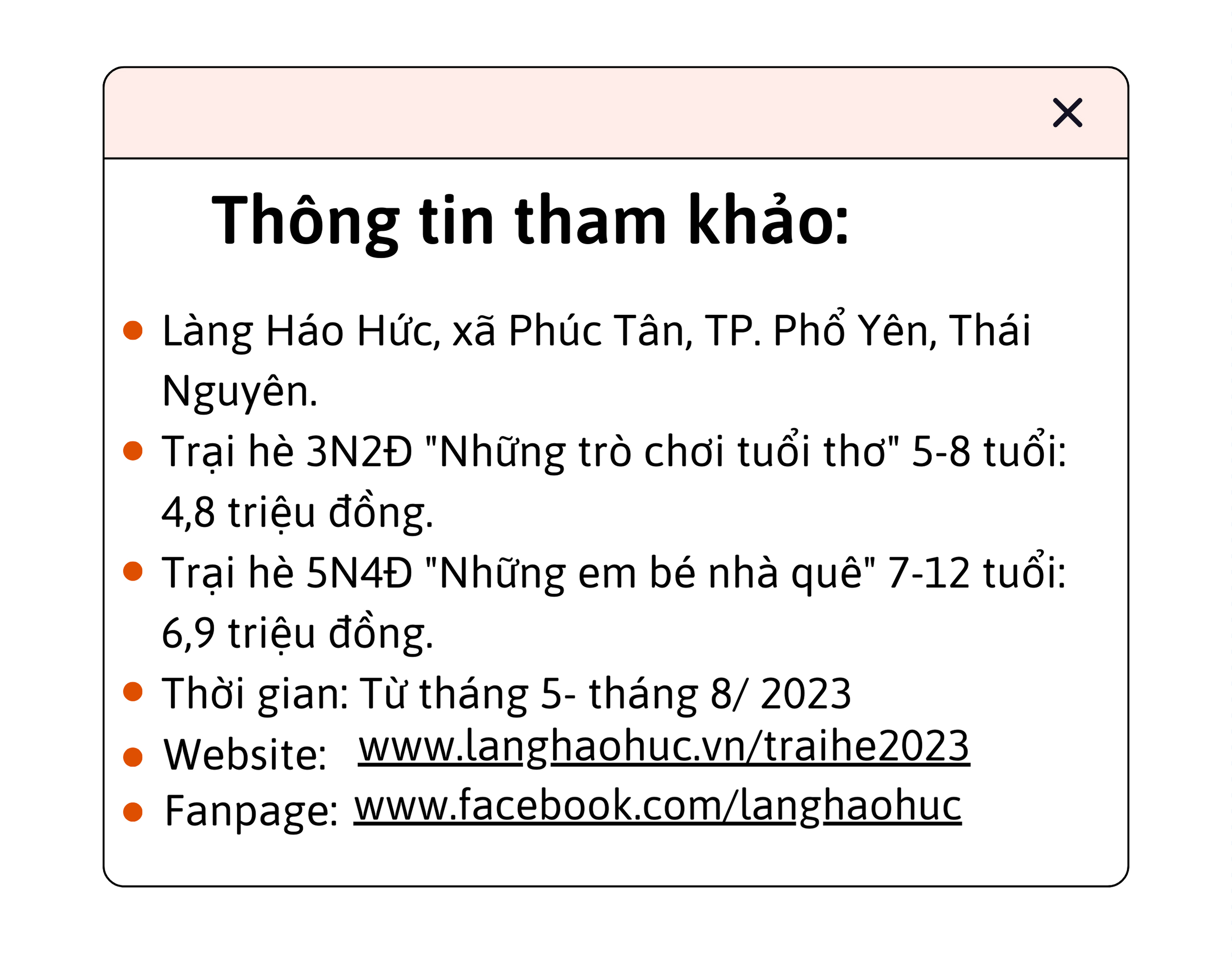 Là một nhà hoạt động giáo dục, đồng thời là mẹ của 4 con nhỏ, Ths Nguyễn Minh Trang chia sẻ, bản thân chị luôn mong muốn các con có được những mùa hè trọn vẹn, những trải nghiệm, tuổi thơ đáng nhớ như thế hệ trước. Với mong muốn đó, trại hè Làng Háo hức đưa trẻ đến với cuộc sống chuẩn phong vị của làng quê Bắc Bộ truyền thống với nhà tranh mái lá, giếng nước, cầu ao, vườn rau, đàn gà, đàn lợn, cùng những con đường rừng ríu rít tiếng chim hót và rợp bóng cây xanh. Đến đây trẻ được trải nghiệm cuộc sống rộn rã niềm vui, hòa mình với thiên nhiên, nhưng vẫn được tích luỹ những kỹ năng sống, rèn luyện thể lực, ý chí bản lĩnh…