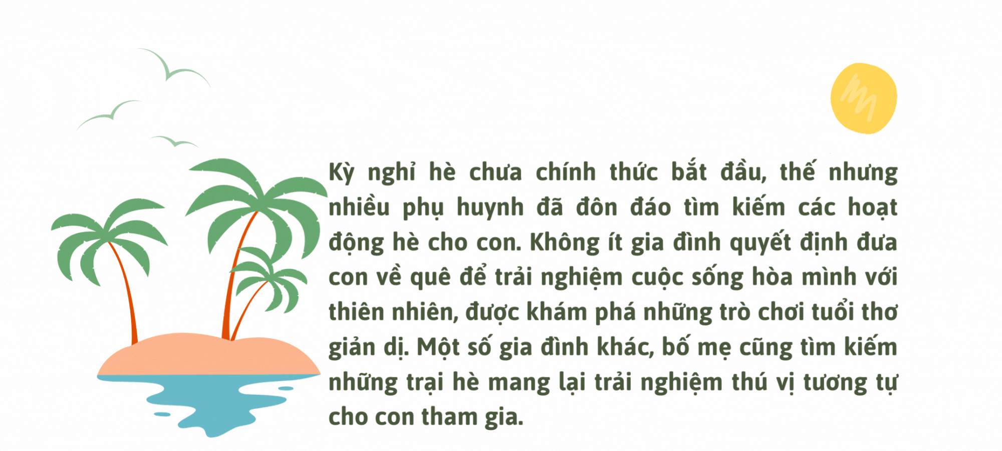 Mỗi khi hè về, việc lựa chọn cho con chơi gì, học gì mùa hè cũng là băn khoăn của không ít bậc phụ huynh. Trong đó, thay vì ép con có thêm một “học kỳ thứ ba”, nhiều bố mẹ quyết định đưa con về quê hoặc chọn những trại hè có tính chất tương tự để con được giải trí, “xả stress” sau một năm học tập vất vả, được hòa mình với thiên nhiên, được trải nghiệm những trò chơi tuổi thơ thú vị.