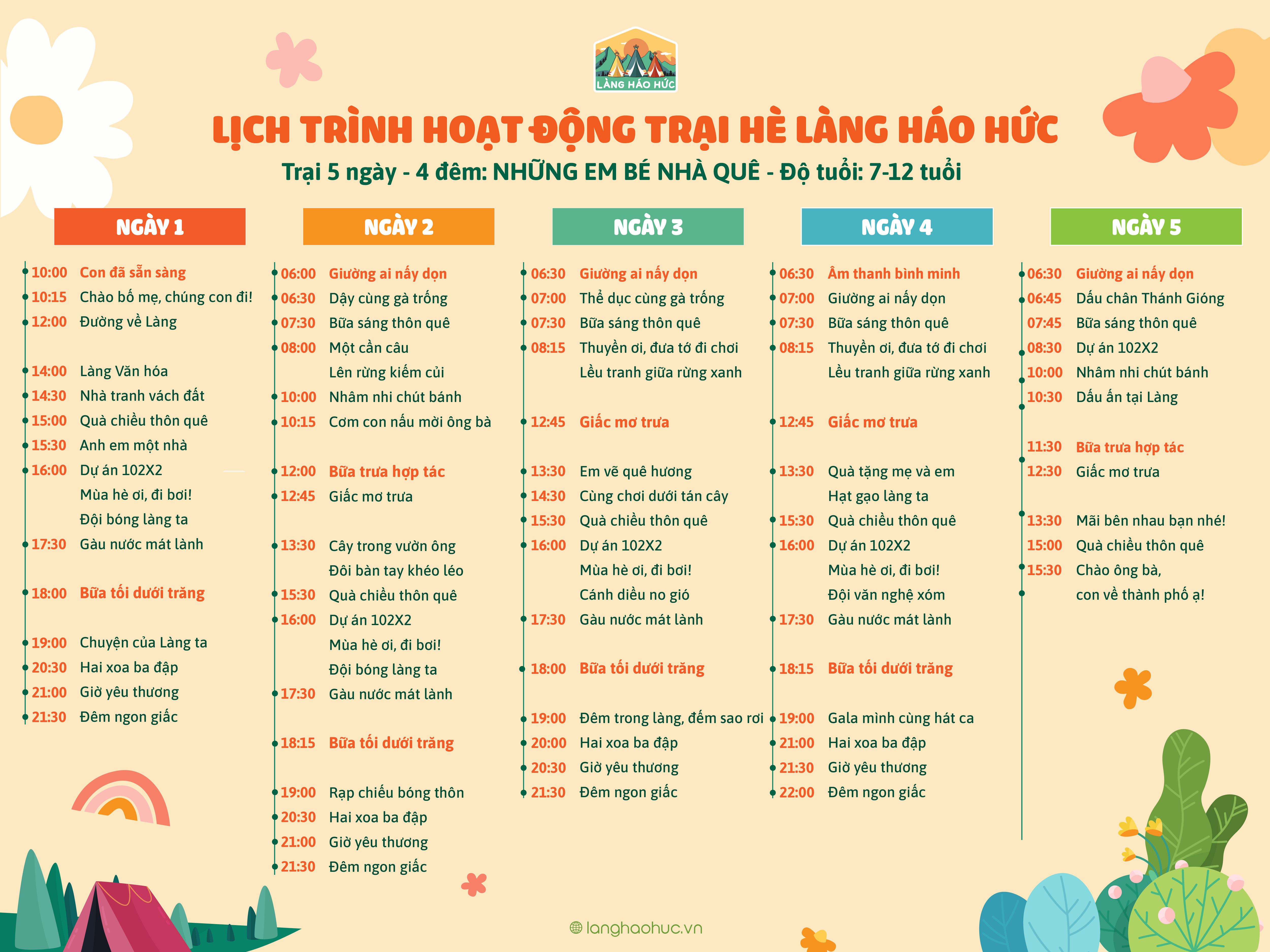 Tại Làng Háo Hức, mỗi hoạt động đều được lồng ghép các bài học, giá trị khơi dậy tình yêu thương và tinh thần trách nhiệm trong từng bạn nhỏ. Giúp các trại sinh tự nhận ra, trân trọng giá trị của gia đình, bạn bè và sống có trách nhiệm hơn với thế giới quanh mình nhưng vẫn được vui chơi, giải trí.