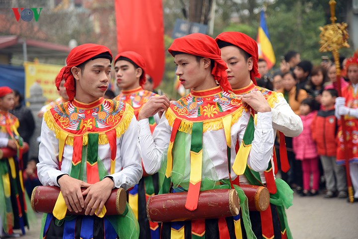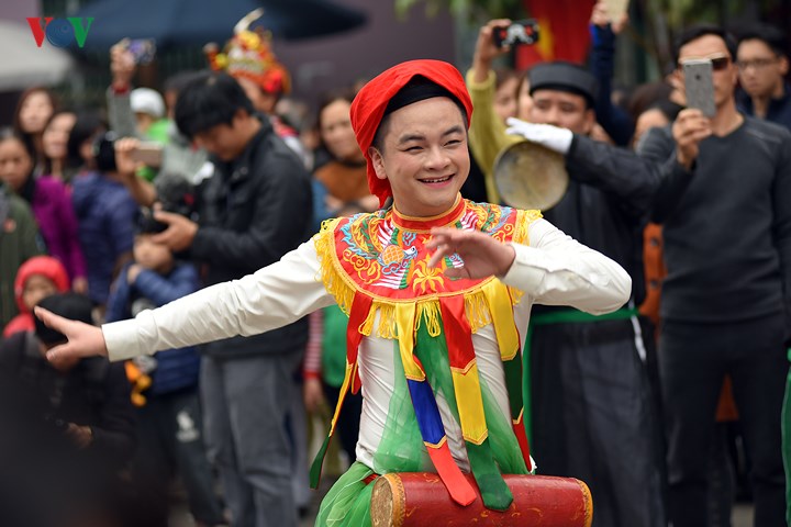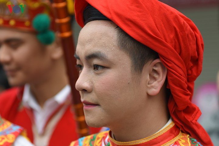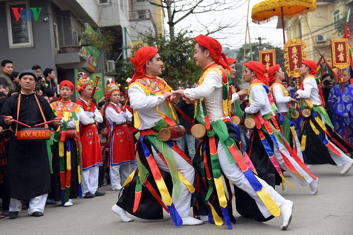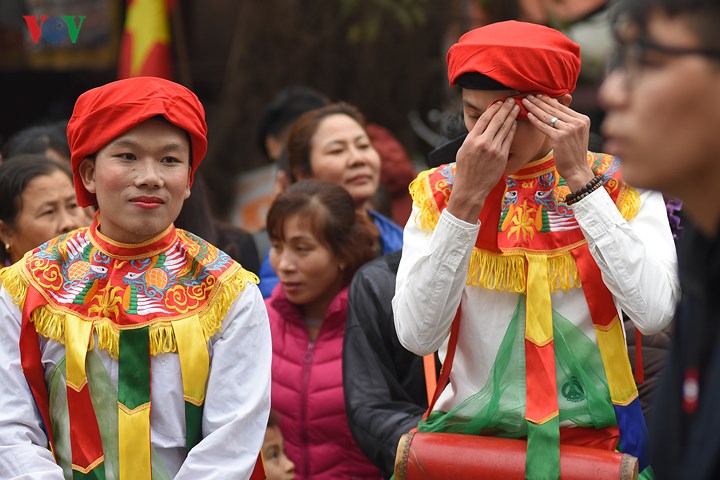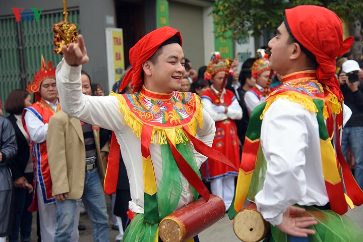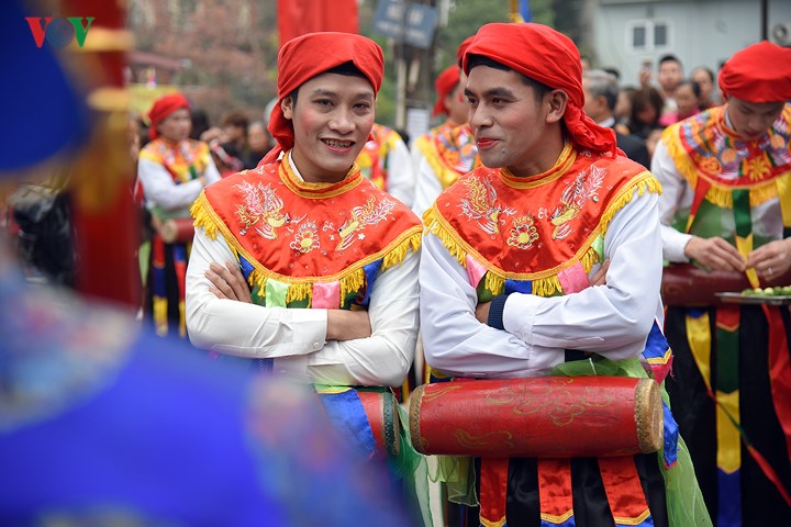 | Đến hẹn lại lên, từ ngày mùng 9 tháng Giêng âm lịch, các chàng trai Triều Khúc (xã Tân Triều, huyện Thanh Trì, Hà Nội) sửa soạn cho màn múa "con đĩ đánh bồng" đặc sắc trong lễ hội của làng. |
