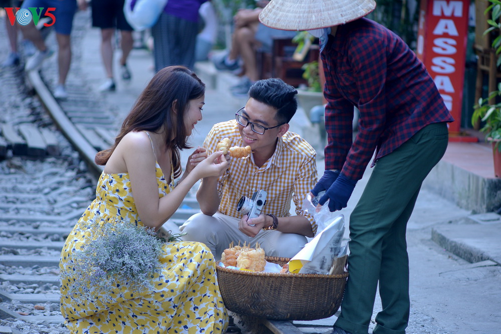 | Đường ray tàu hỏa không là điều xa lạ ở nhiều quốc gia, nhưng đối với nhiều du khách nước ngoài, thì việc dạo bước ngay sát tuyến đường sắt qua những dãy nhà san sát nhau lại là một trải nghiệm thú vị tại Hà Nội. |