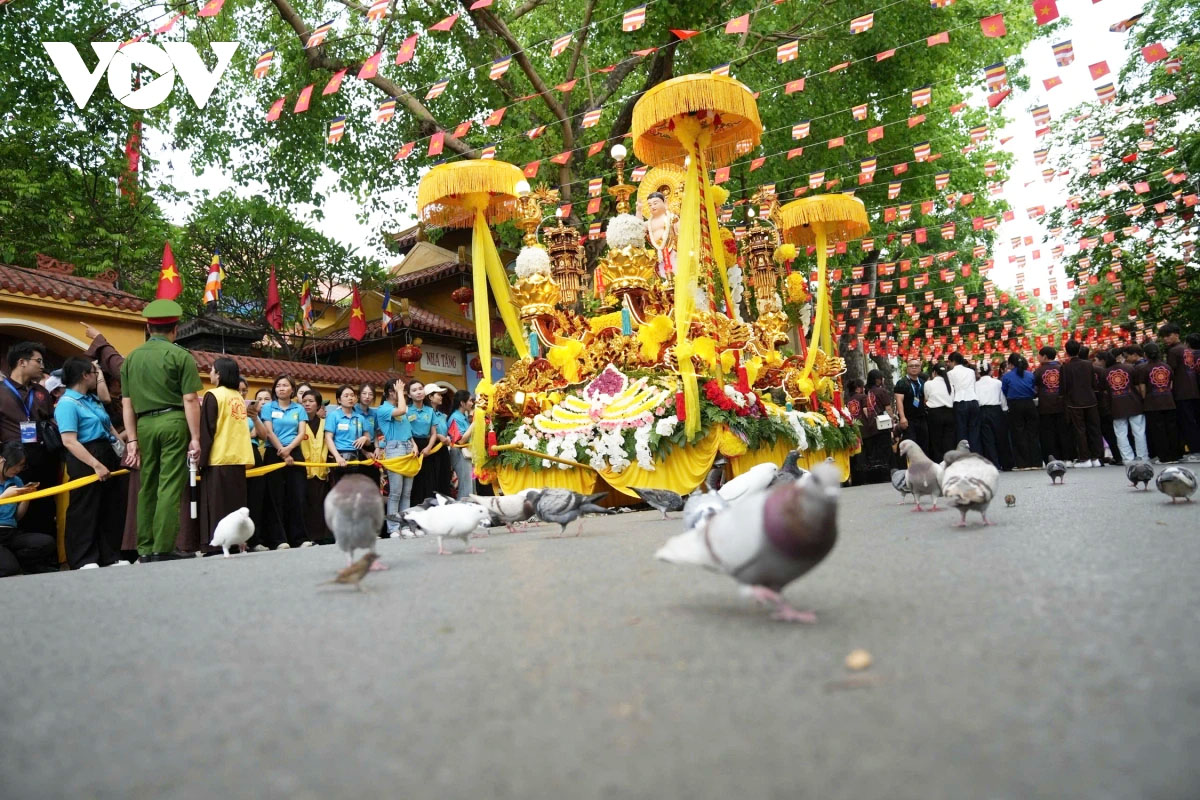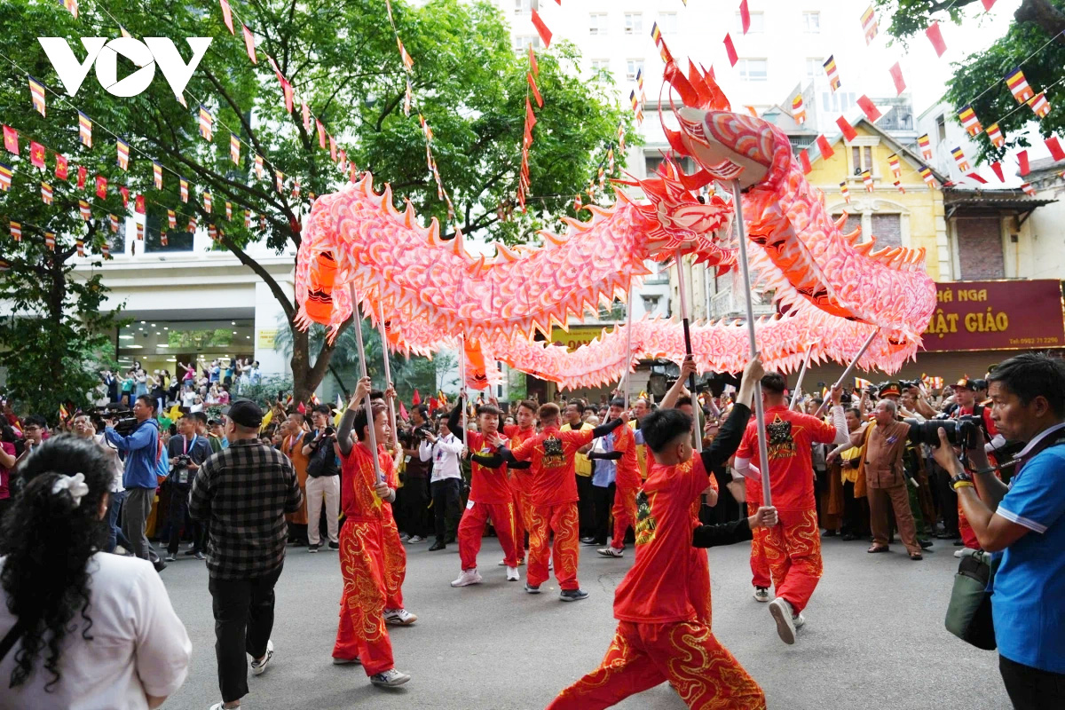 | Đến 18h cùng ngày, đoàn cung rước sẽ tiếp tục hành trình qua các tuyến phố trung tâm quanh hồ Hoàn Kiếm như Lý Thường Kiệt, Hàng Bài, Đinh Tiên Hoàng, Bà Triệu... trước khi trở về chùa Quán Sứ. |