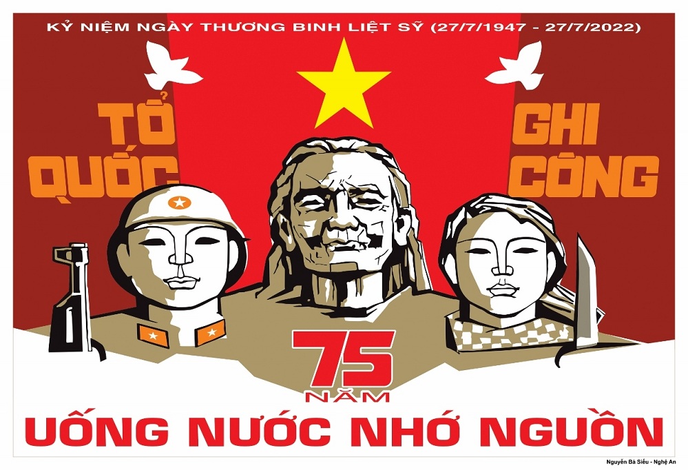 Một số tác phẩm trong bộ sưu tập tranh cổ động phục vụ công tác tuyên truyền kỷ niệm 75 năm Ngày Thương binh, Liệt sỹ (27/7/1947-27/7/2022):
