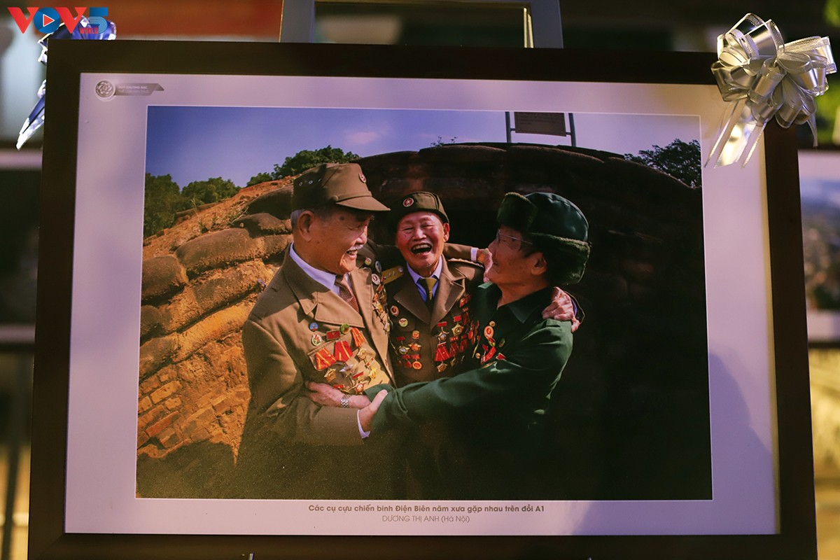 Tác phẩm đoạt Huy chương Bạc “Các cụ cựu chiến binh Điện Biên năm xưa gặp nhau trên đồi A1” của tác giả Dương Thị Anh (Hà Nội). |