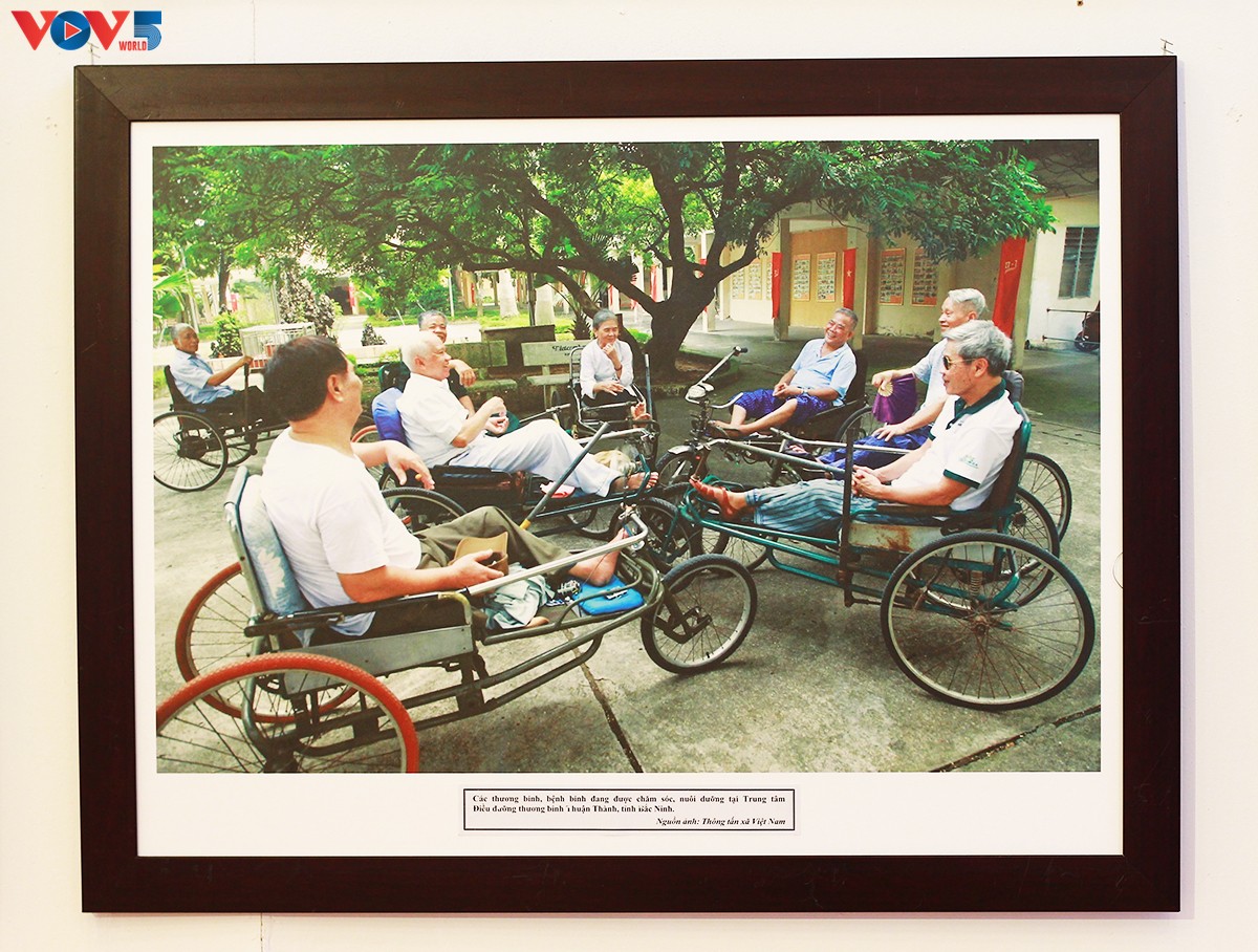 Triển lãm gồm các không gian trưng bày chuyên đề, với điểm nhấn là khu triển lãm chung, trưng bày gần 100 tư liệu, hình ảnh nêu bật sự quan tâm của Chủ tịch Hồ Chí Minh và các lãnh đạo Đảng, Nhà nước với công tác thương binh, liệt sỹ và người có công với cách mạng. Ảnh: Báo Lao động |