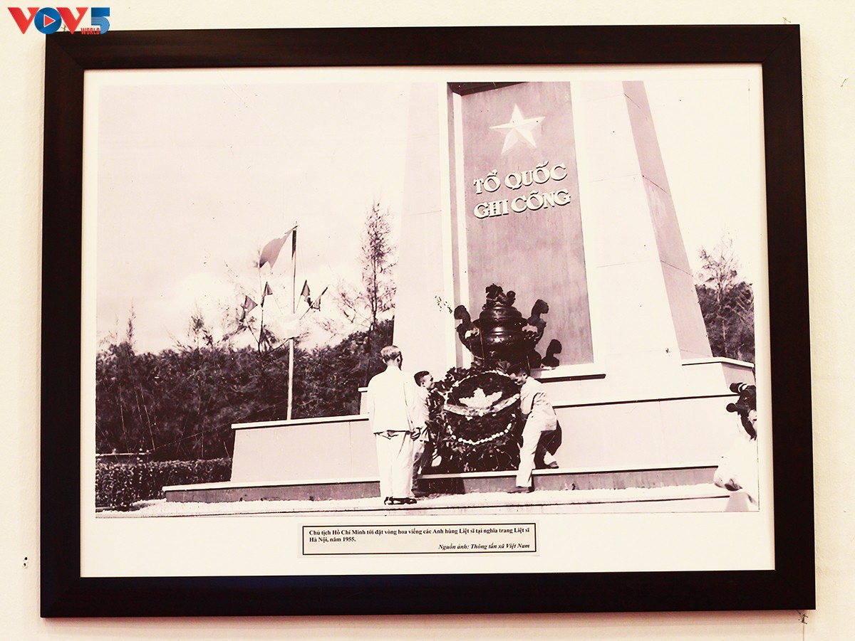 Chủ tịch Hồ Chí Minh viếng các Anh hùng liệt sỹ tại nghĩa trang Liệt sỹ Hà Nội, năm 1955. |