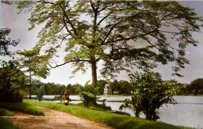 | Hồ Hoàn Kiếm xưa. Ảnh từ bảo tàng Albert Kahn do GS Đinh Trọng Hiếu và Poision sưu tầm |