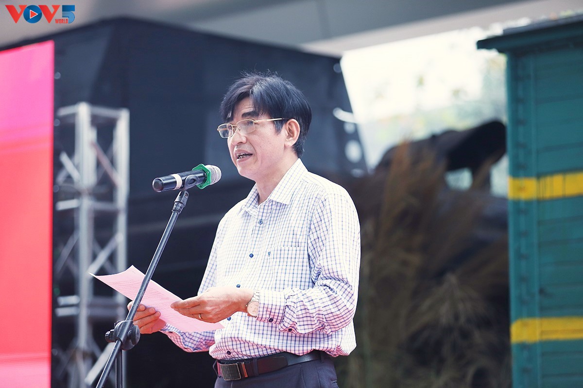 Phát biểu tại lễ khai mạc, ông Đặng Văn Biểu - Phó Giám đốc Bảo tàng Hà Nội cho biết: “Áo dài là biểu tượng bản sắc văn hóa dân tộc Việt Nam, không chỉ gắn với sự tinh khôi, thanh lịch mà còn đồng hành cùng người phụ nữ trong suốt những hành trình năm tháng chiến tranh khốc liệt, tà áo dài vẫn tung bay, thể hiện lòng yêu nước, sự bền bỉ và ý chí kiên cường của những người mẹ, người chị dù trong bom rơi, đạn lạc, khó khăn gian khổ, vẫn giữ vững niềm tin kiên trung, bất khuất, đóng góp vào chiến thắng chung của dân tộc”. |