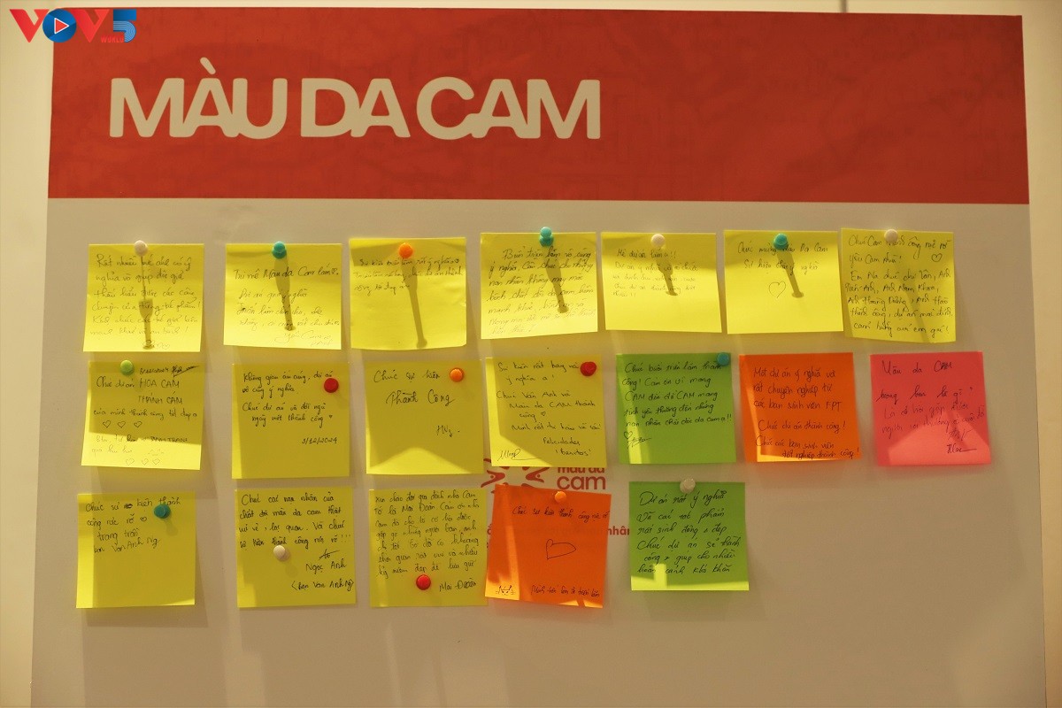 Chia sẻ về tên gọi của Triển lãm, em Vân Anh (thành viên Ban tổ chức dự án “Màu da cam”) cho biết, “Họa” (tranh) là nơi mọi người được thưởng thức những bức tranh theo chủ đề hy vọng dưới con mắt của họa sĩ. “Cam” (nghệ thuật hoặc câu chuyện) là nơi những câu chuyện không chỉ được miêu tả bằng câu chữ mà còn ẩn dưới tác phẩm và cảm nhận của người xem. “Thảnh” (workshop) là nơi mọi người có thể trải nghiệm một số hoạt động góp phần chung tay tạo hy vọng cho các nạn nhân chất độc da cam. “Cảm” (bán tranh) là nơi đấu giá những bức tranh vì mục đích thiện nguyện.