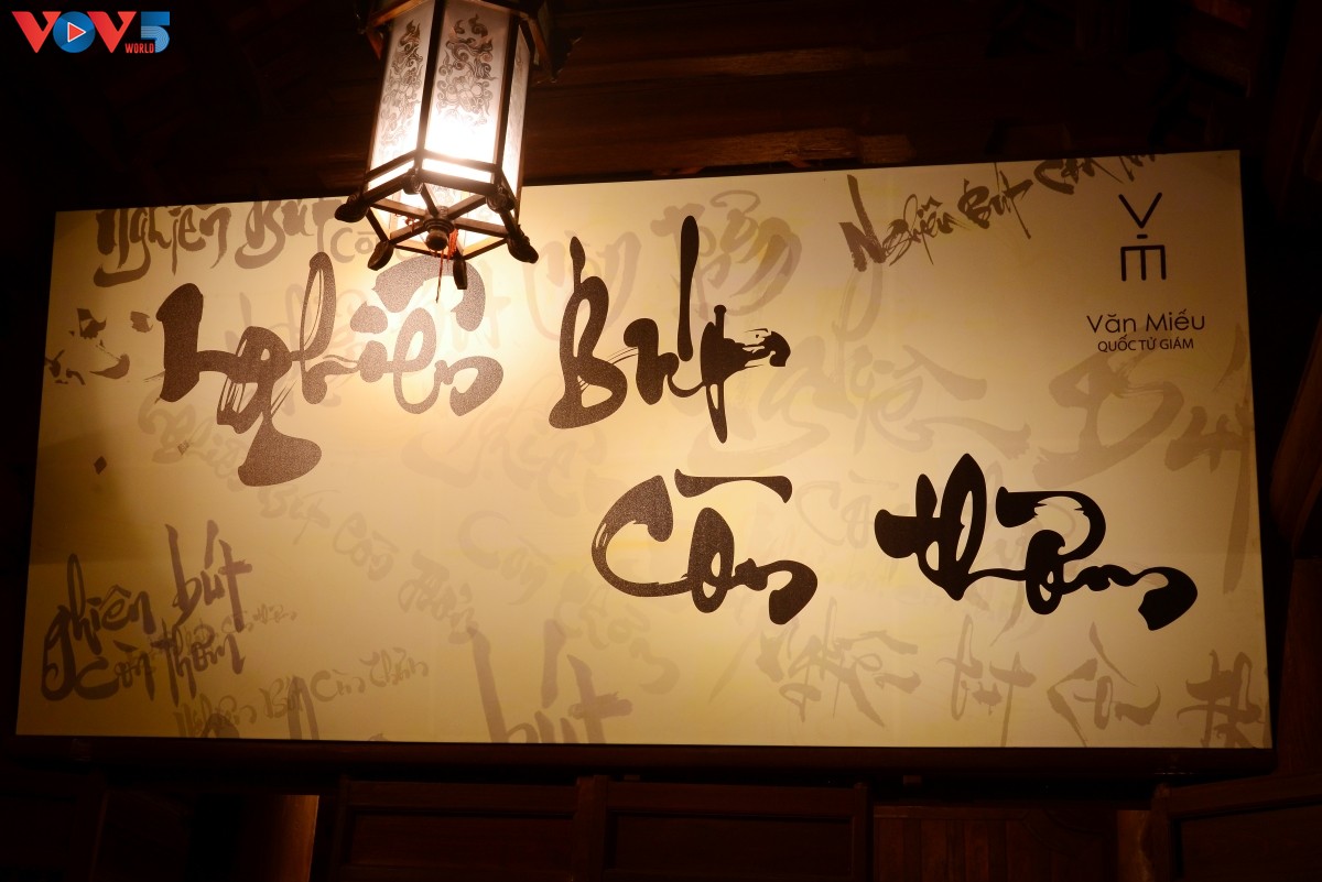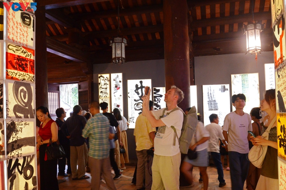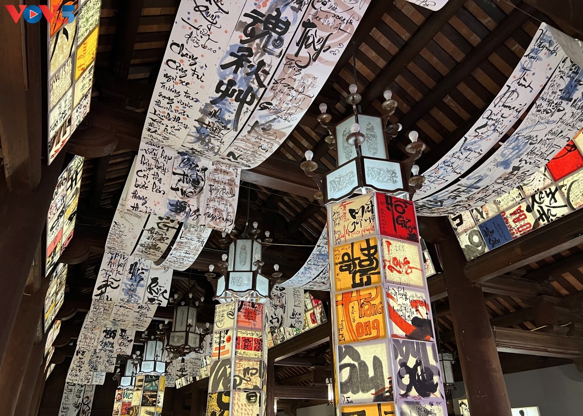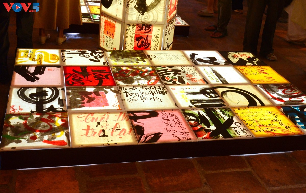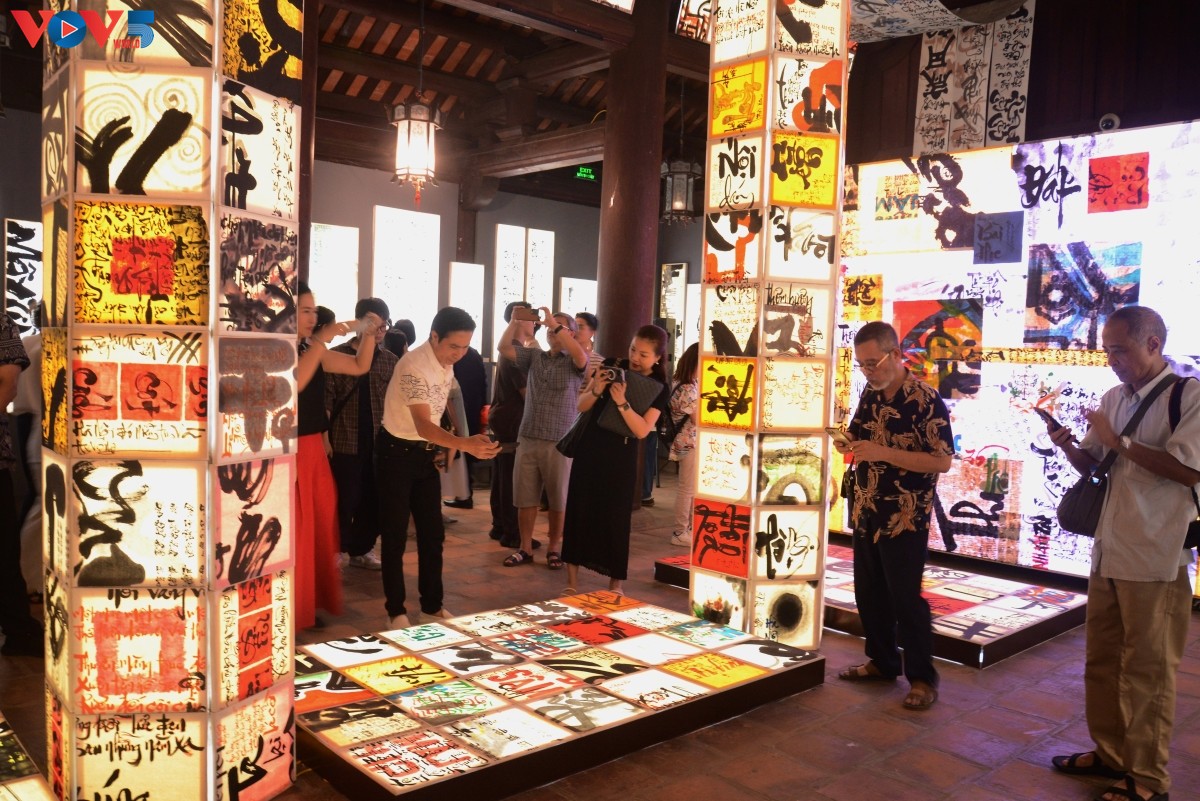 Cánh cửa Nhà Thái Học mở ra không gian đầy màu sắc bởi màn kết hợp nghệ thuật thư pháp chữ Quốc ngữ cùng ánh sáng tạo nên hiệu ứng và cách nhìn mới đến với công chúng yêu nghệ thuật nói chung và thư pháp nói riêng. |