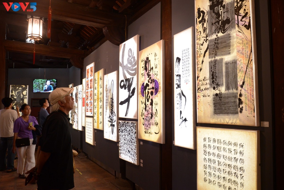 Không gian triển lãm vô cùng ấn tượng với dải băng giấy dài 200m. Nội dung những bức thư pháp được lấy cảm hứng từ thơ văn Quốc âm (chữ Nôm), Quốc ngữ của các danh nhân trong nước như Nguyễn Trãi, Lê Thánh Tông, Nguyễn Bỉnh Khiêm, Nguyễn Du, Chủ tịch Hồ Chí Minh. Ngoài ra, các tác giả còn sử dụng những nội dung văn chương hiện đại viết về Thăng Long, Hà Nội. |