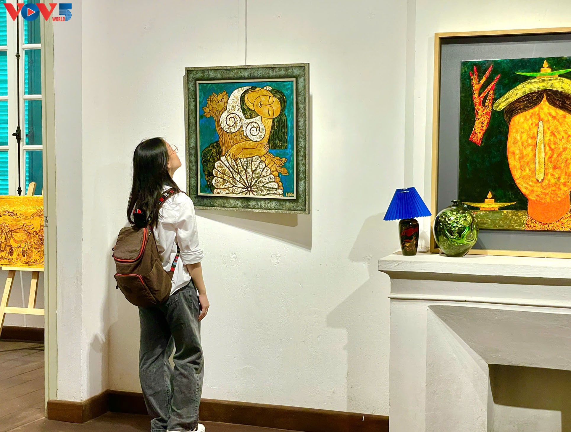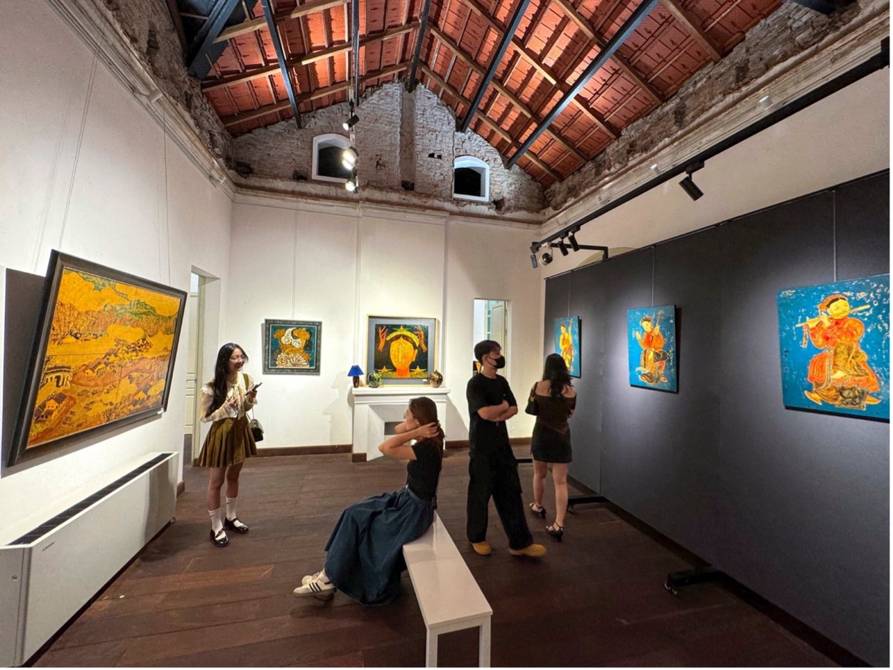 | Triển lãm thu hút giới trẻ đến tham quan và thưởng lãm tranh. Ảnh: Hà Phương/VOV5. |
