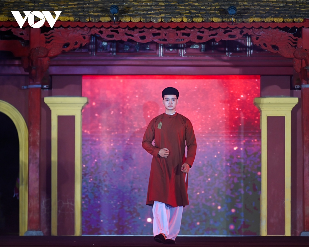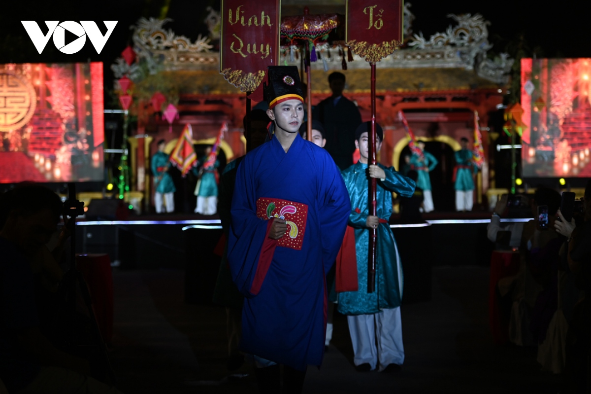 Tái hiện lễ Vinh Quy Bái Tổ với trang phục áo dài lễ phục của ngày xưa. |