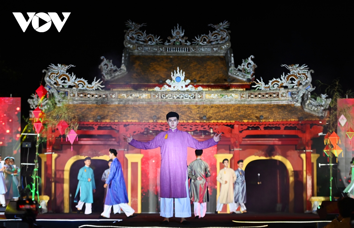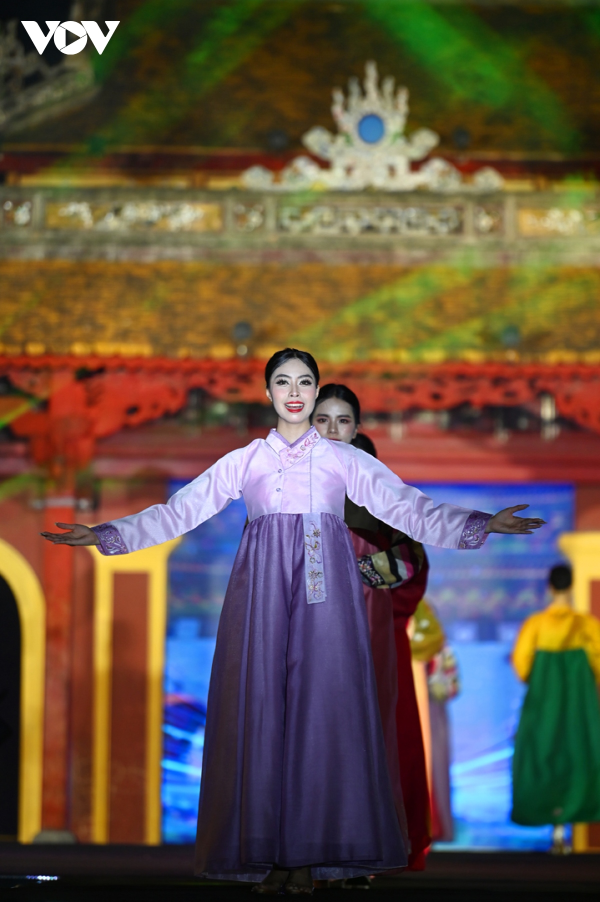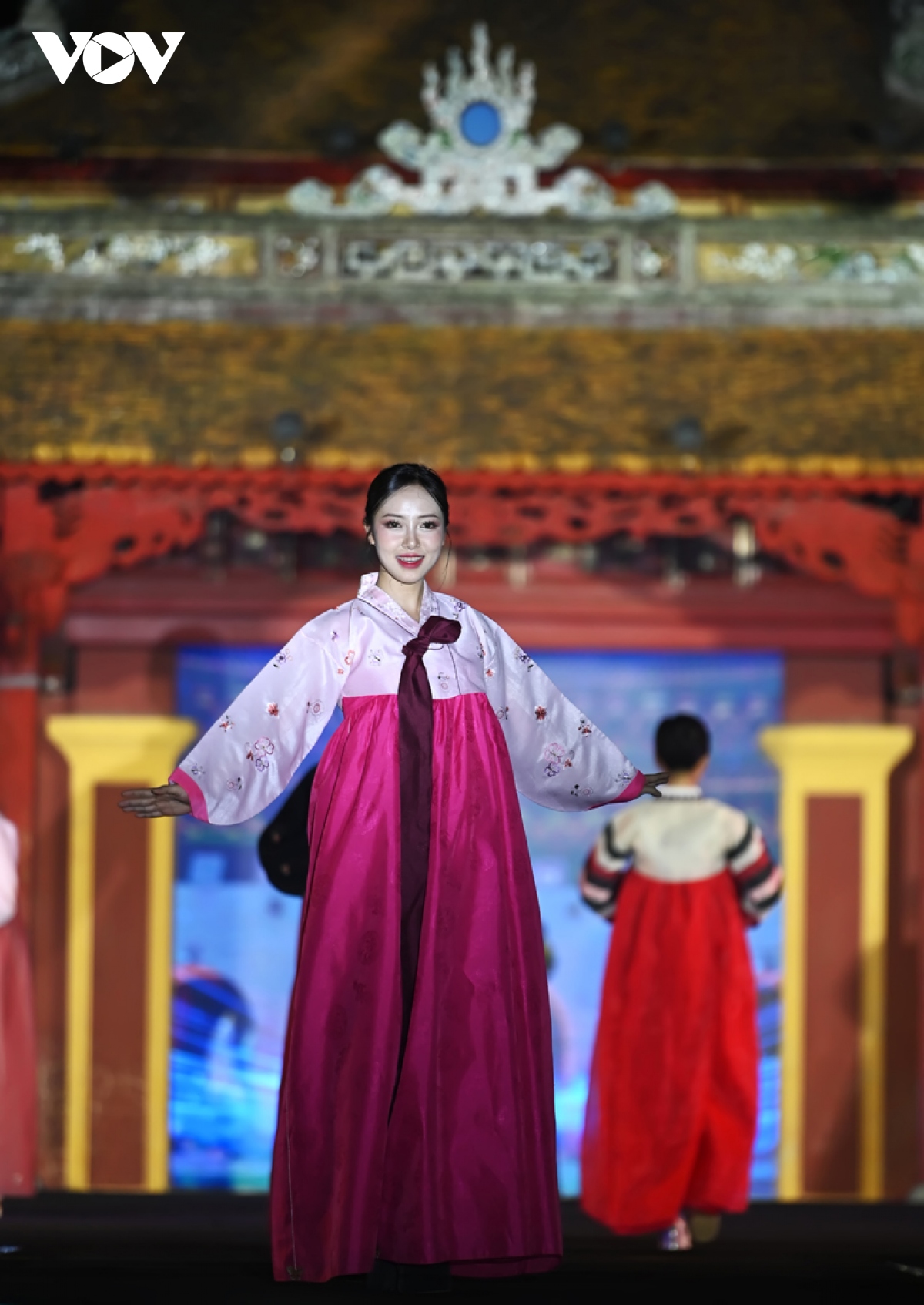 Chương trình “Áo dài Việt Nam - Hanbok Hàn Quốc” diễn ra tối 26/6 tại Nghinh Lương Đình bên bờ sông Hương thơ mộng nằm trong khuôn khổ Tuần lễ áo dài cộng đồng Huế 2024. |