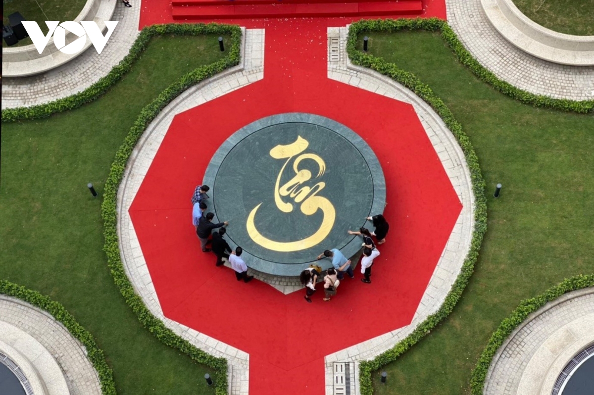 Trung tâm vườn Công lý là hồ phun nước với chữ "Tâm" nằm ở giữa.