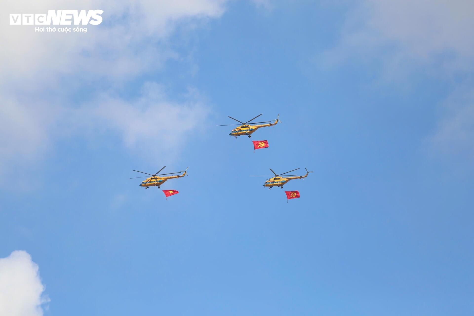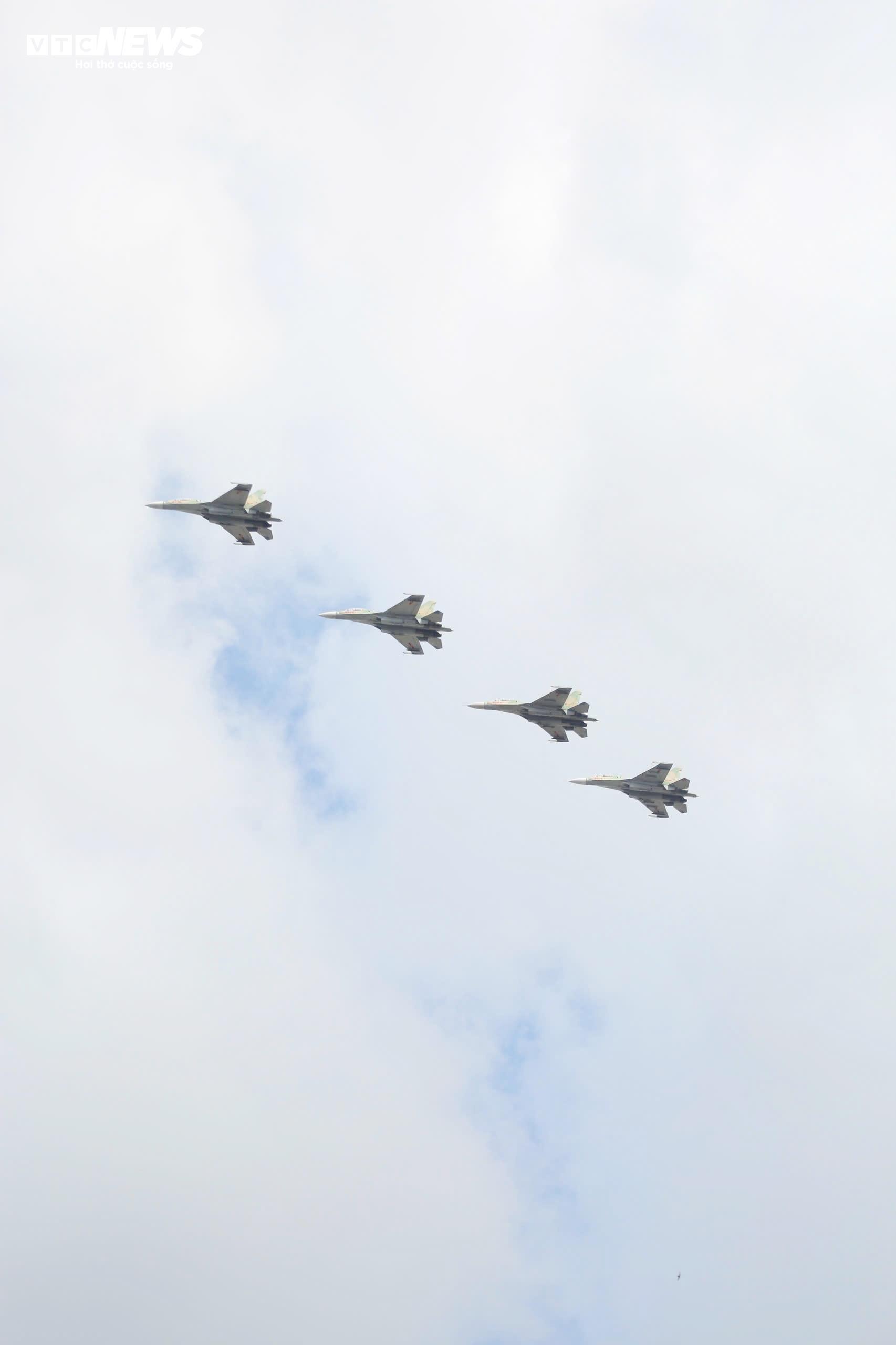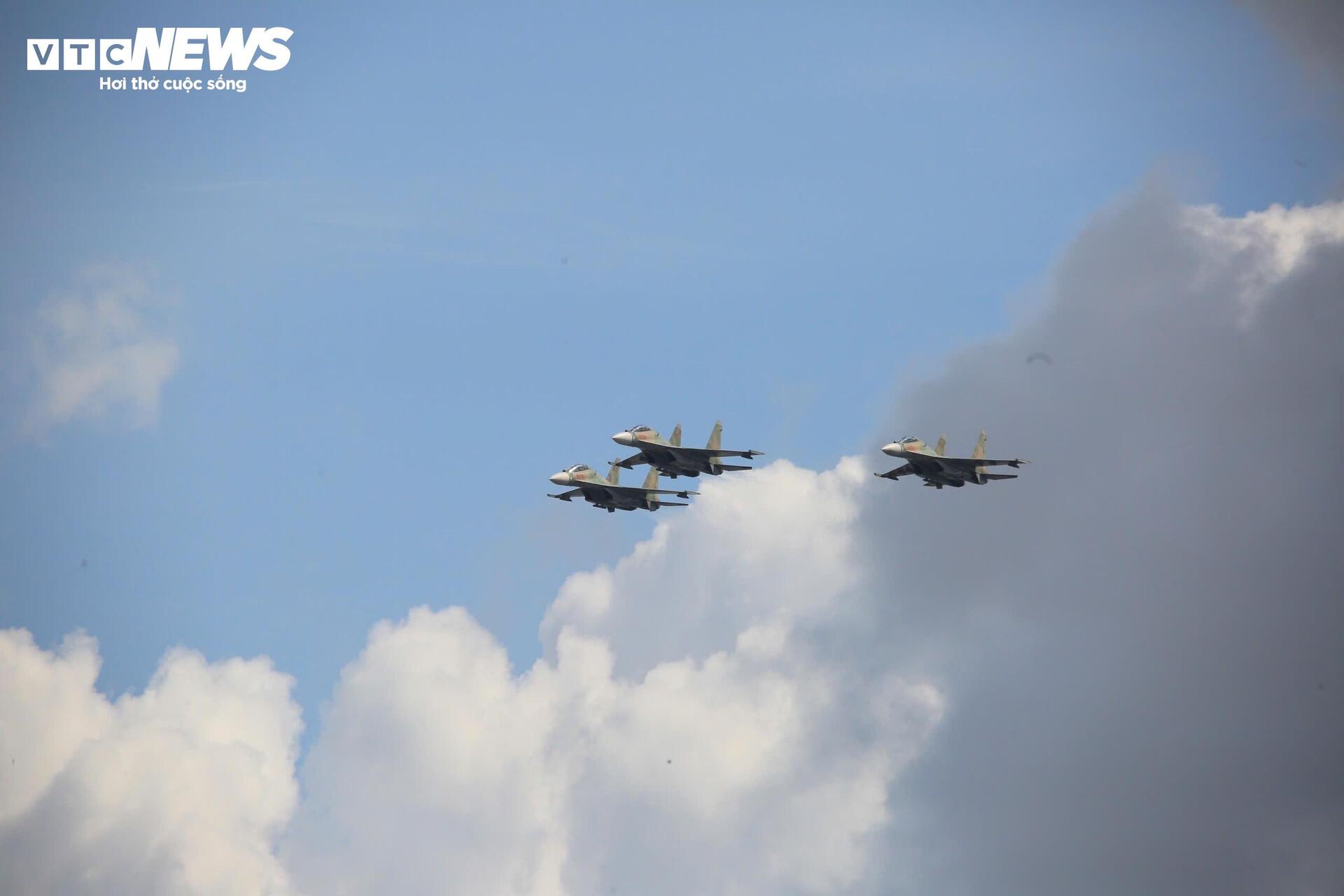 | Các đội hình bay được chia theo tổ, bay theo đội hình chiến thuật, tạo nên màn trình diễn mãn nhãn với sự phối hợp nhịp nhàng giữa tiêm kích hiện đại và trực thăng. |