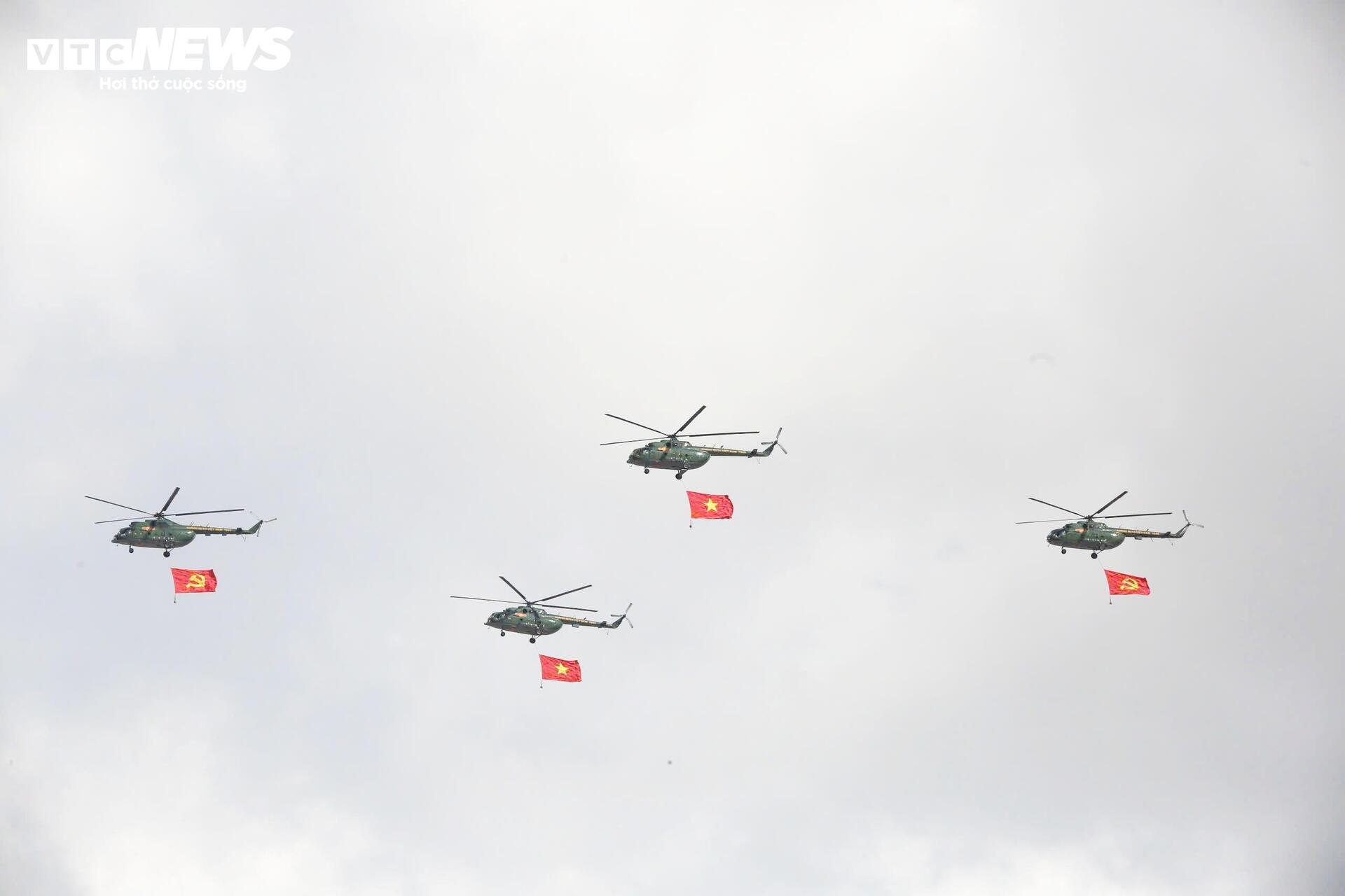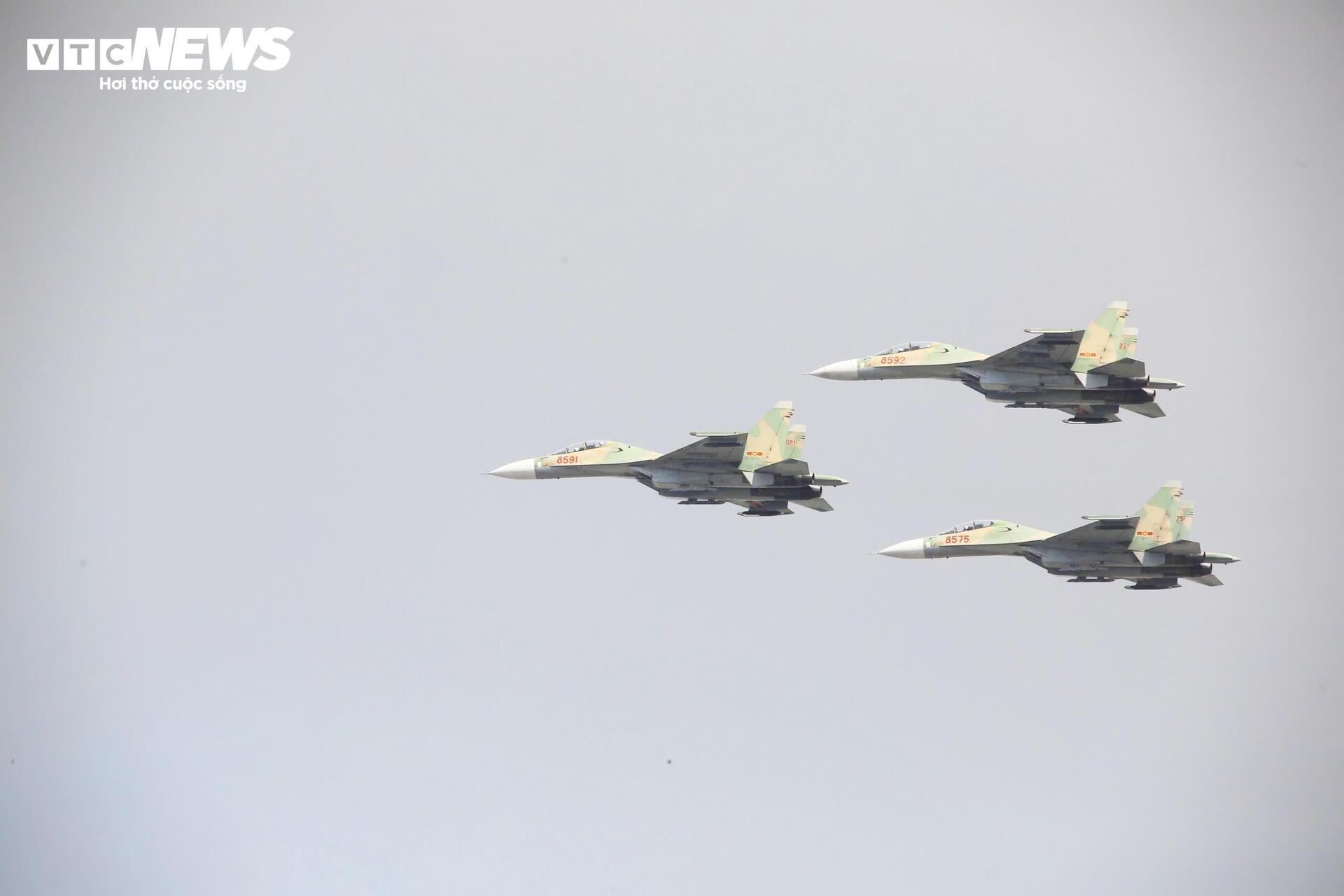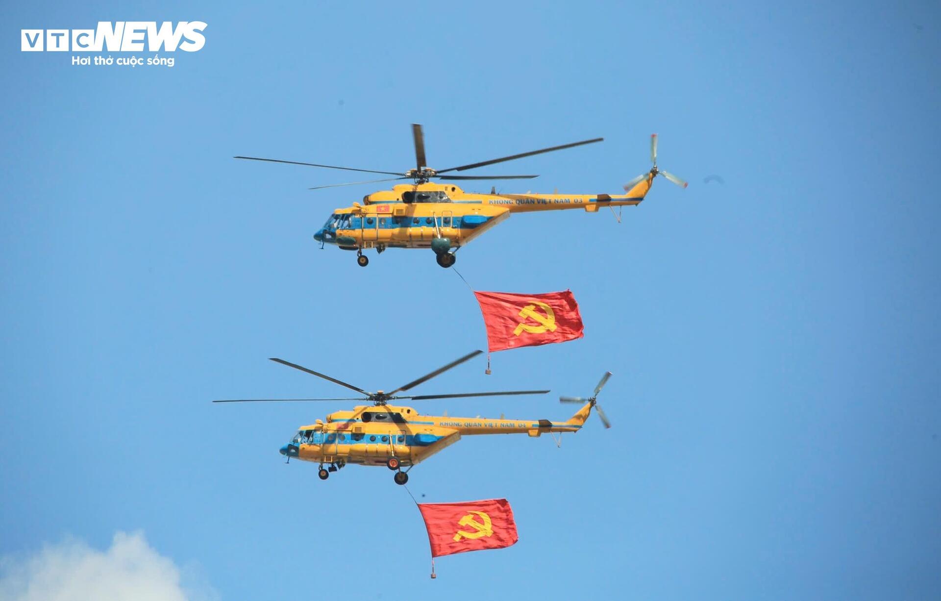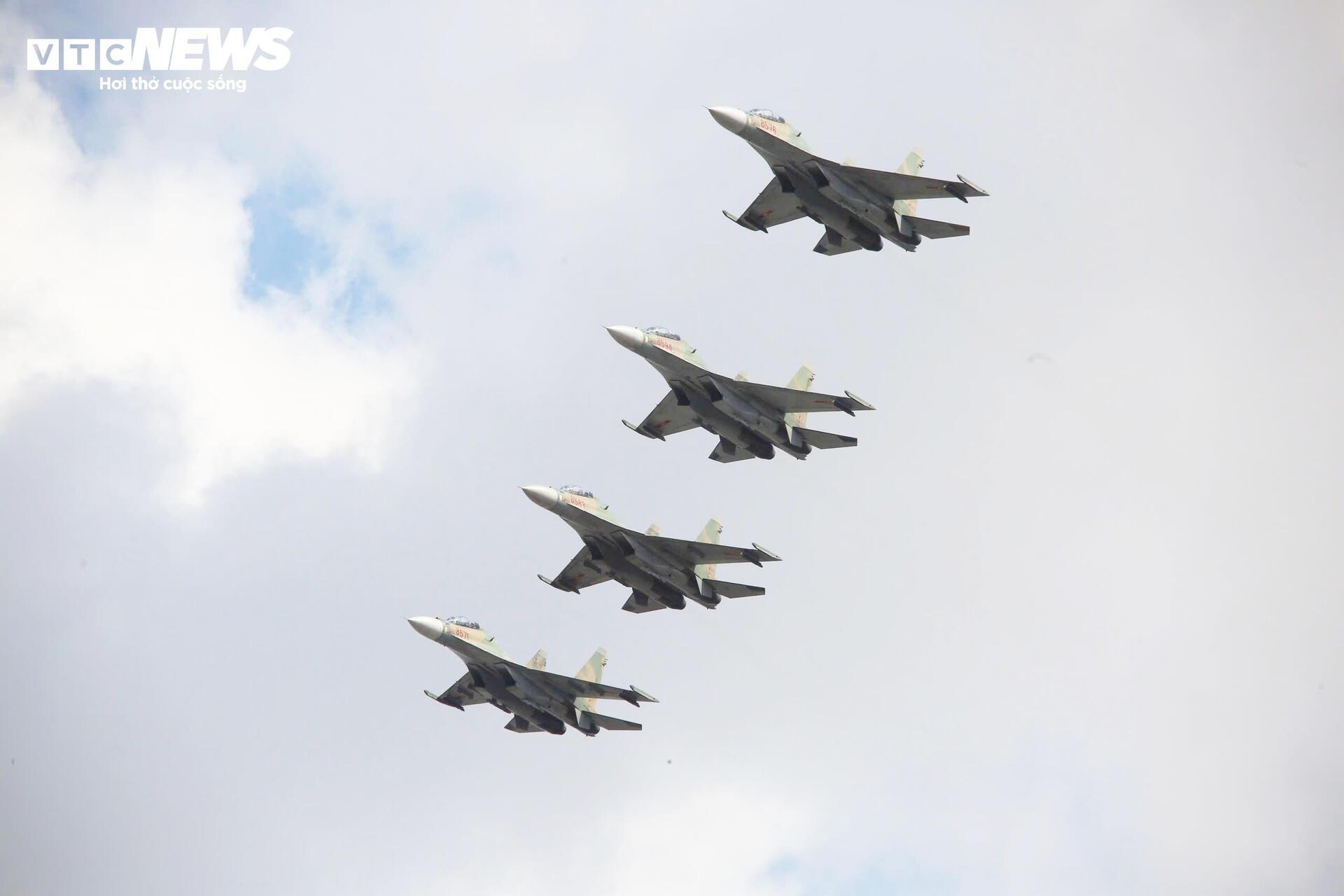 | Các đội hình bay được chia theo tổ, bay theo đội hình chiến thuật, tạo nên màn trình diễn mãn nhãn với sự phối hợp nhịp nhàng giữa tiêm kích hiện đại và trực thăng. |