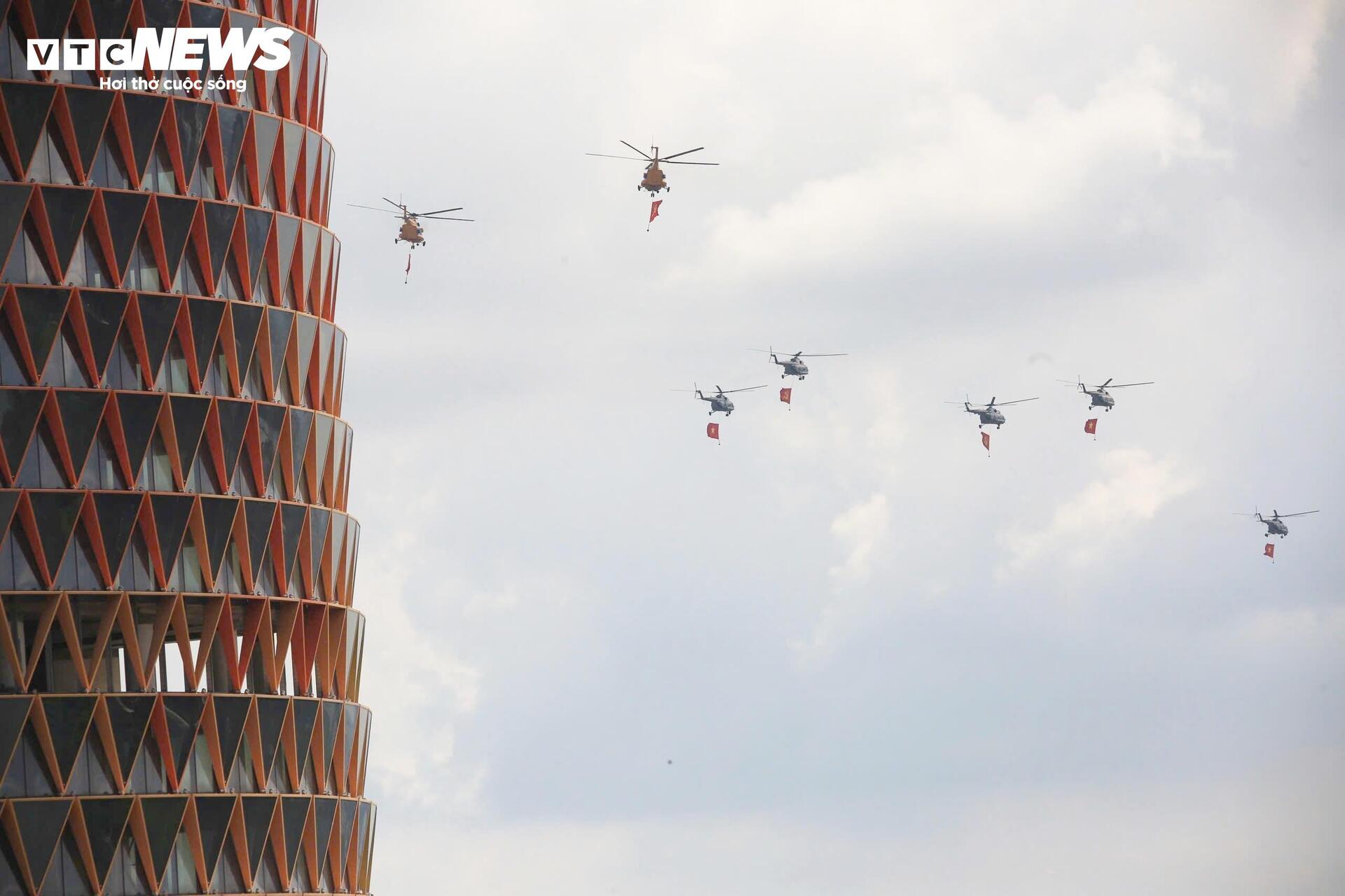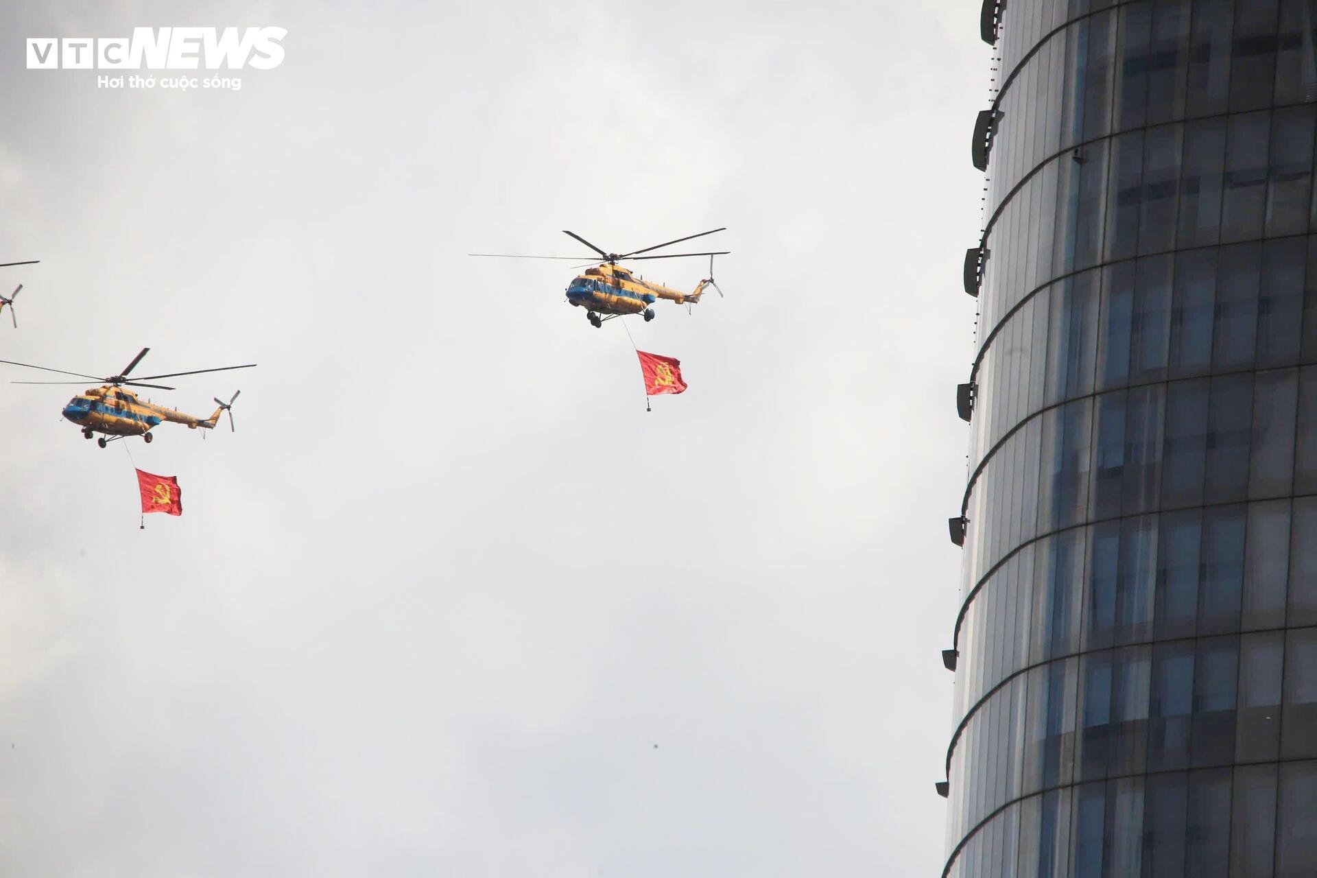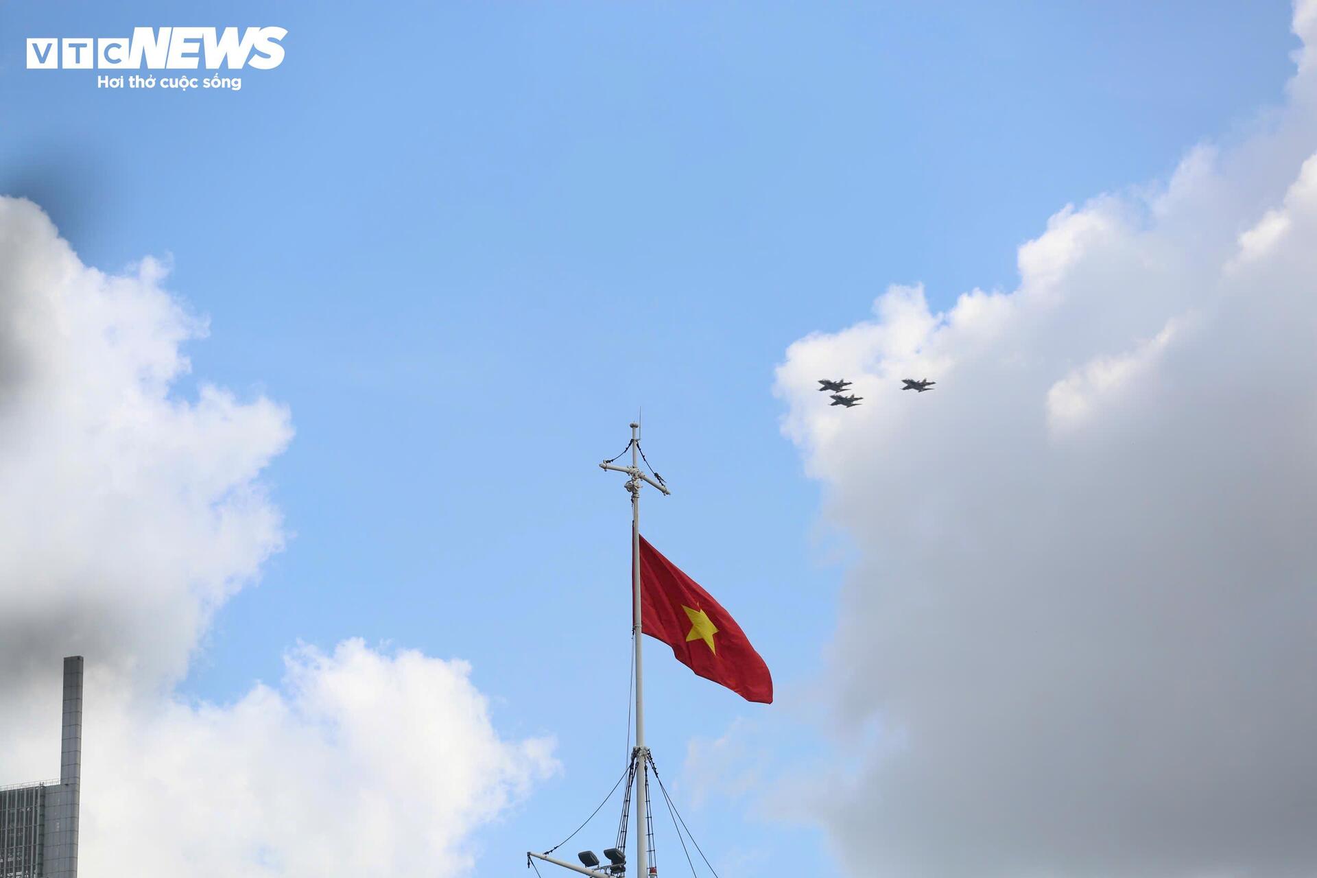 | Âm thanh gầm rú của động cơ phản lực từ các chiến đấu cơ cùng tiếng cánh quạt đặc trưng của trực thăng vang vọng trên không khiến người dân, du khách tại TP.HCM không khỏi trầm trồ. |