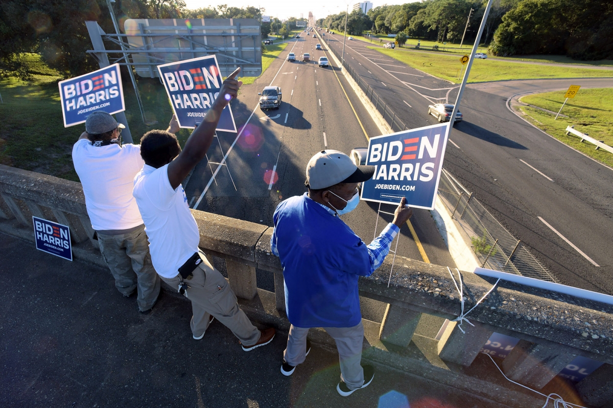 Cả đảng Dân chủ và đảng Cộng hòa đang chứng kiến số lượng cử tri đi bỏ phiếu trong Ngày bầu cử tăng cao tại các bang chiến địa. Hiện tại, đội ngũ tranh cử của ứng cử viên Joe Biden đang nỗ lực hối thúc cử tri đi bỏ phiếu nhiều hơn tại một số bang chiến địa, trong đó có Florida.