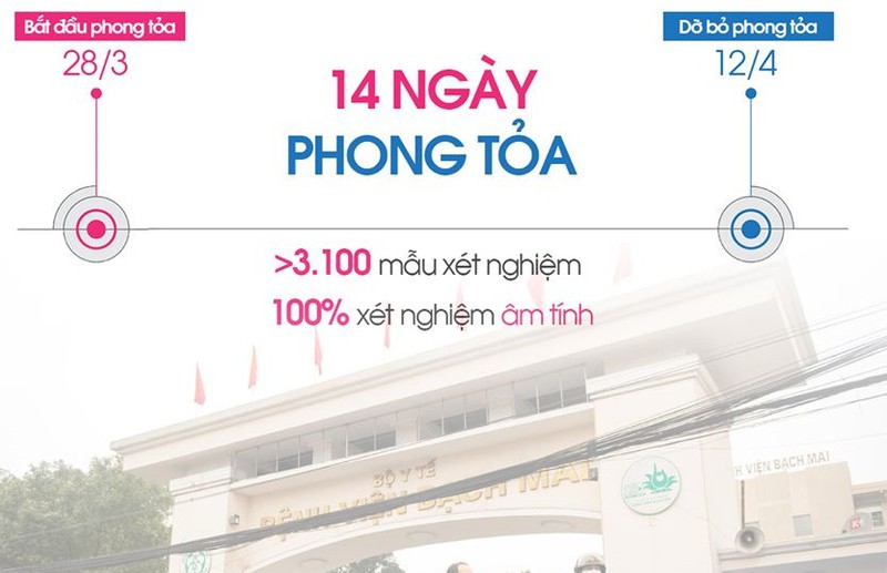 Theo quyết định trên, Bệnh viện Bạch Mai đã thực hiện cách ly y tế đủ 14 ngày, đáp ứng đủ các yêu cầu như quy định của Bộ Y tế. Đồng thời, căn cứ tình hình thực tế, quận Đống Đa quyết định kết thúc việc cách ly y tế đối với Bệnh viện Bạch Mai để bệnh viện có thể tiếp tục thực hiện công tác khám, chữa bệnh bình thường.