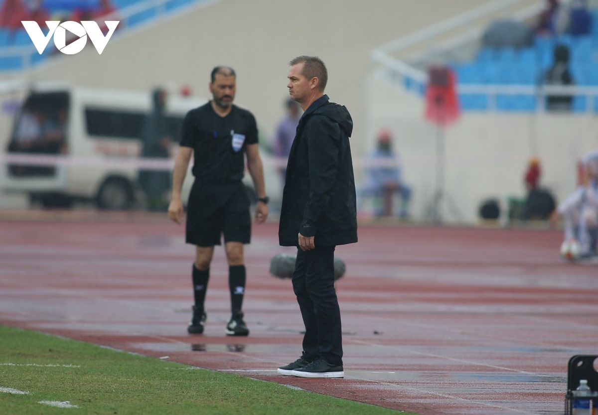 Trời mưa ảnh hưởng khá nhiều đến chất lượng trận đấu.