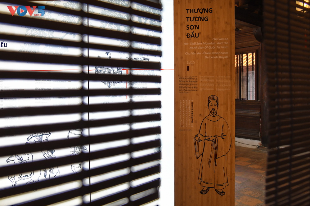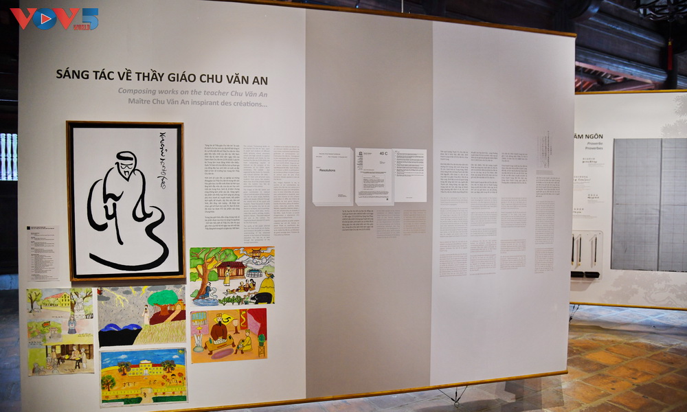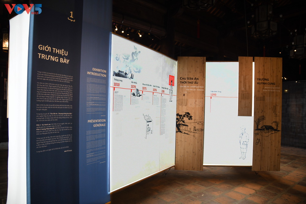| Trưng bày chuyên đề gồm 2 phầm “Túc thanh cao” giới thiệu về con người, nhân cách, sự nghiệp giáo dục của danh nhân Chu Văn An; “Gương Thầy sáng mãi” giới thiệu về Quốc Tử Giám, hoạt động tôn vinh Danh nhân Chu Văn An, học tập và phát huy tinh thần của thầy giáo Chu Văn An hiện nay |