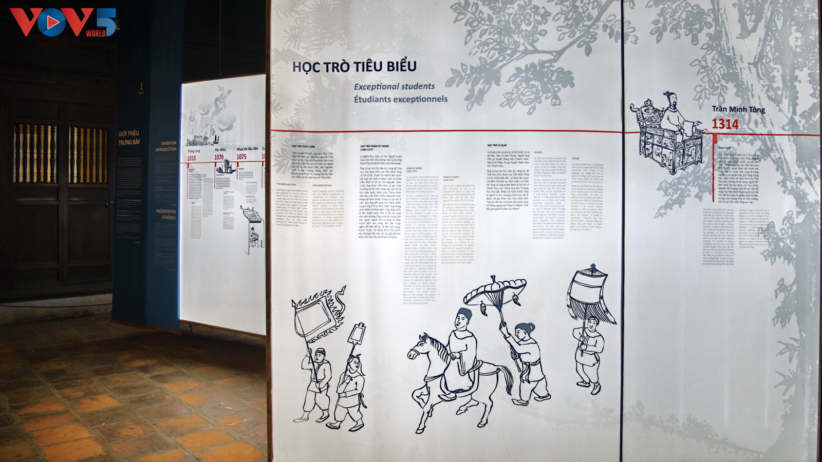 | Trưng bày còn giới thiệu đến công chúng về Quốc Tử Giám - nơi thầy Chu Văn An đã từng dạy học; và những địa điểm thờ, những con đường, trường học mang tên thầy giáo Chu Văn An để thấy được sự suy tôn, ngưỡng mộ của hậu thế đối với thầy giáo Chu Văn An - một người thầy hết lòng với nghề dạy học, tinh thần phụng hiến xã hội, vì dân vì nước, đã để lại những ảnh hưởng sâu đậm với giáo dục và văn hóa Việt Nam. |