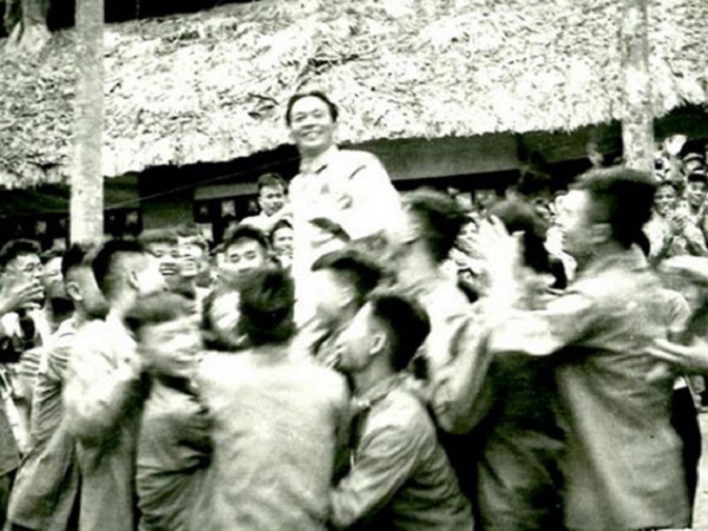 Các chiến sĩ tham gia chiến dịch Điện Biên Phủ công kênh Đại tướng trong lễ mừng công ngày 13/5/1954. Ảnh tư liệu – Nguồn: VNExpress