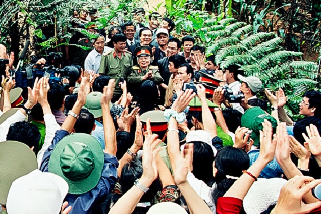 Với người dân Điện Biên, Đại tướng Võ Nguyên Giáp như người cha, người anh đáng kính của gia đình. Để rồi khi ông về thăm, ai cũng mừng vui ra đón. Sự ra đi của Đại tướng Võ Nguyên Giáp là mất mát lớn của cả dân tộc Việt Nam. Thế giới cũng cúi mình trước hương linh của Đại tướng. Ảnh: Trần Tuấn/ TTXVN
