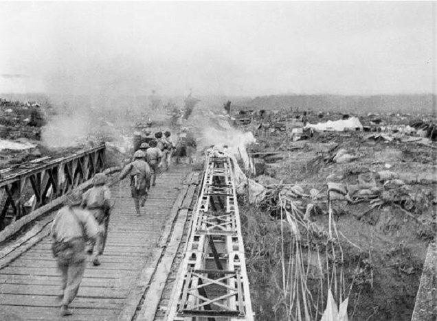 Bộ đội ta vượt qua cầu Mường Thanh, tấn công vào Sở chỉ huy Tập đoàn cứ điểm Điện Biên Phủ, chiều 7/5/1954. Ảnh tư liệu – Nguồn: TTXVN