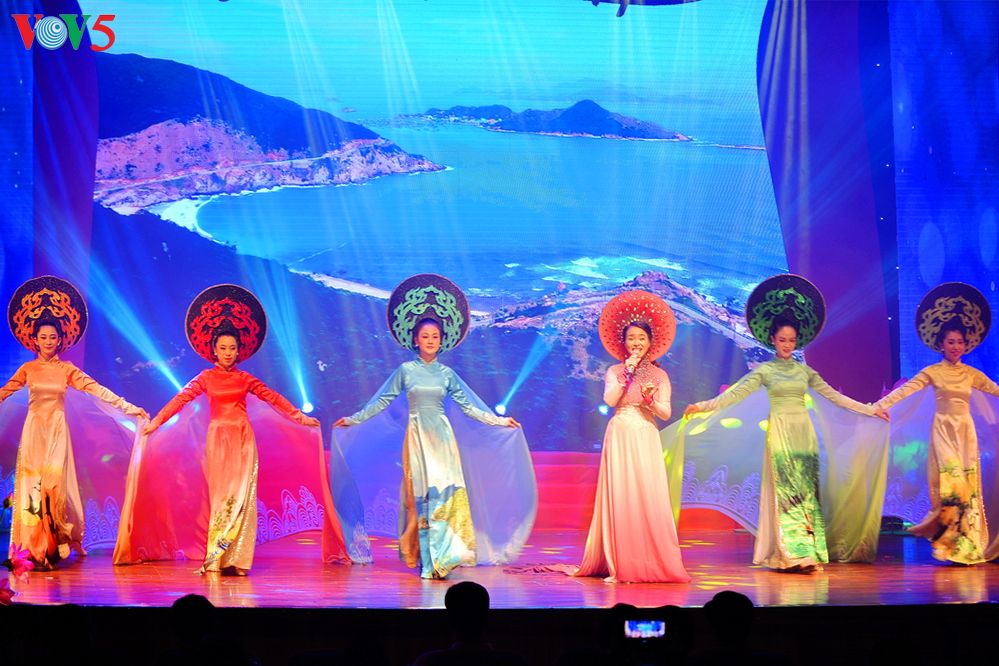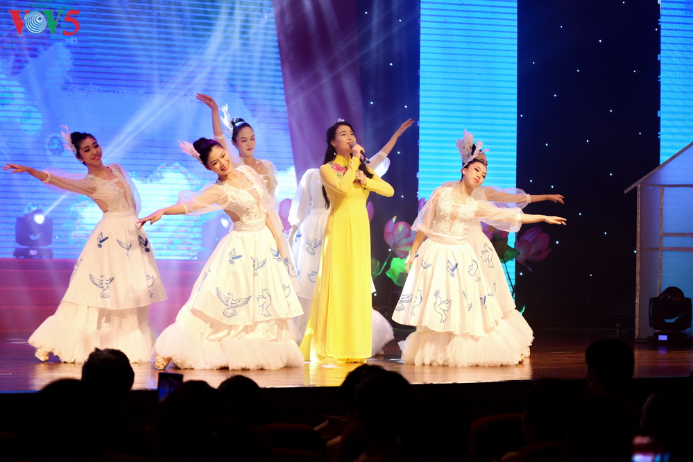 Ca sĩ Đinh Trang và vũ đoàn thể hiện ca khúc "Bài ca thống nhất".