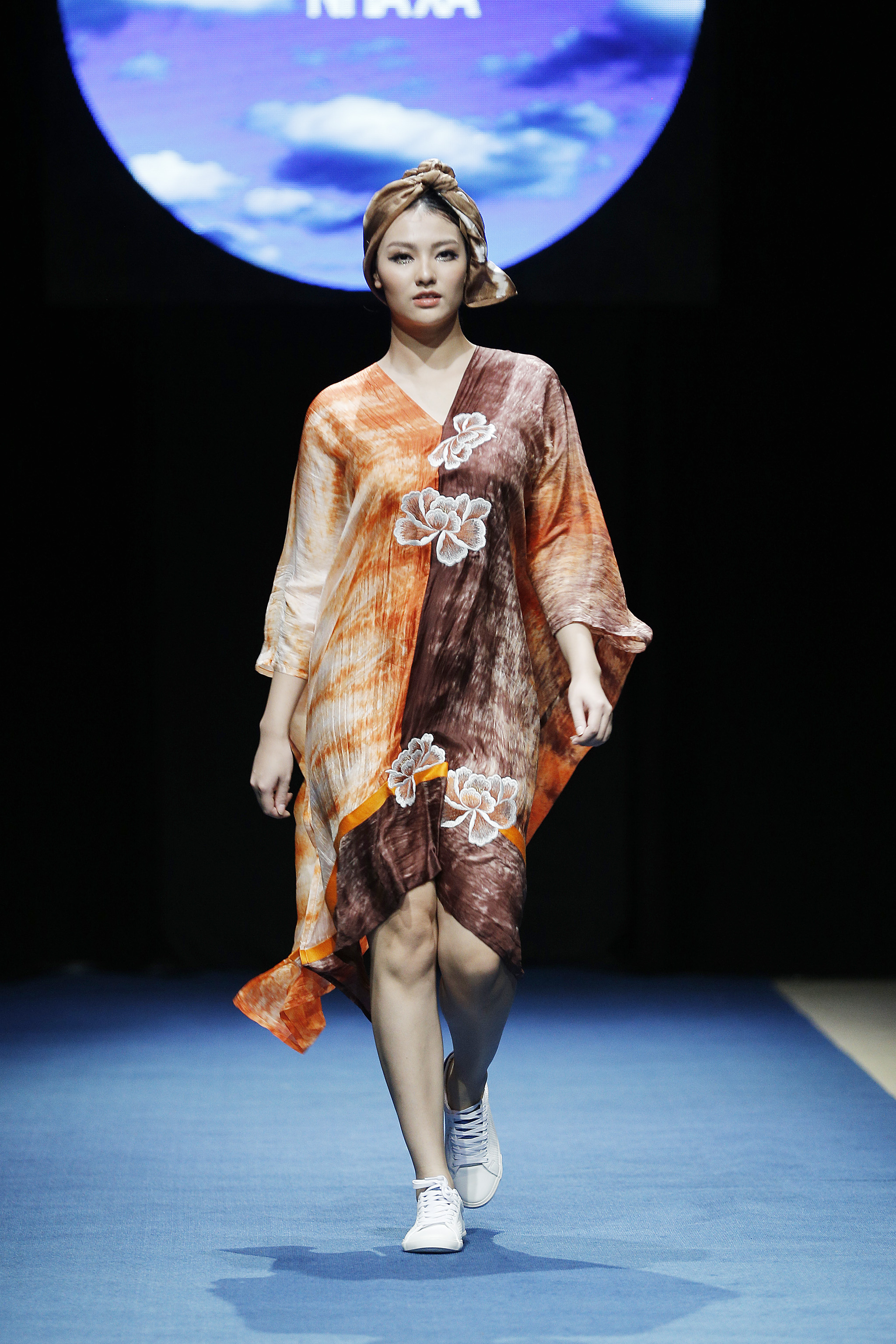 Chỉ với một chất liệu lụa nhuộm nhéo của Nha Xá, NTK Nhi Hoàng dành cho mùa Xuân Hè những sắc màu tương phản, vui nhộn mà vẫn rất gợi cảm. Với những thiết kế tối giản trên nền lụa mỏng manh, Nhi Hoàng đã đưa một tinh thần mới cho lụa truyền thống.